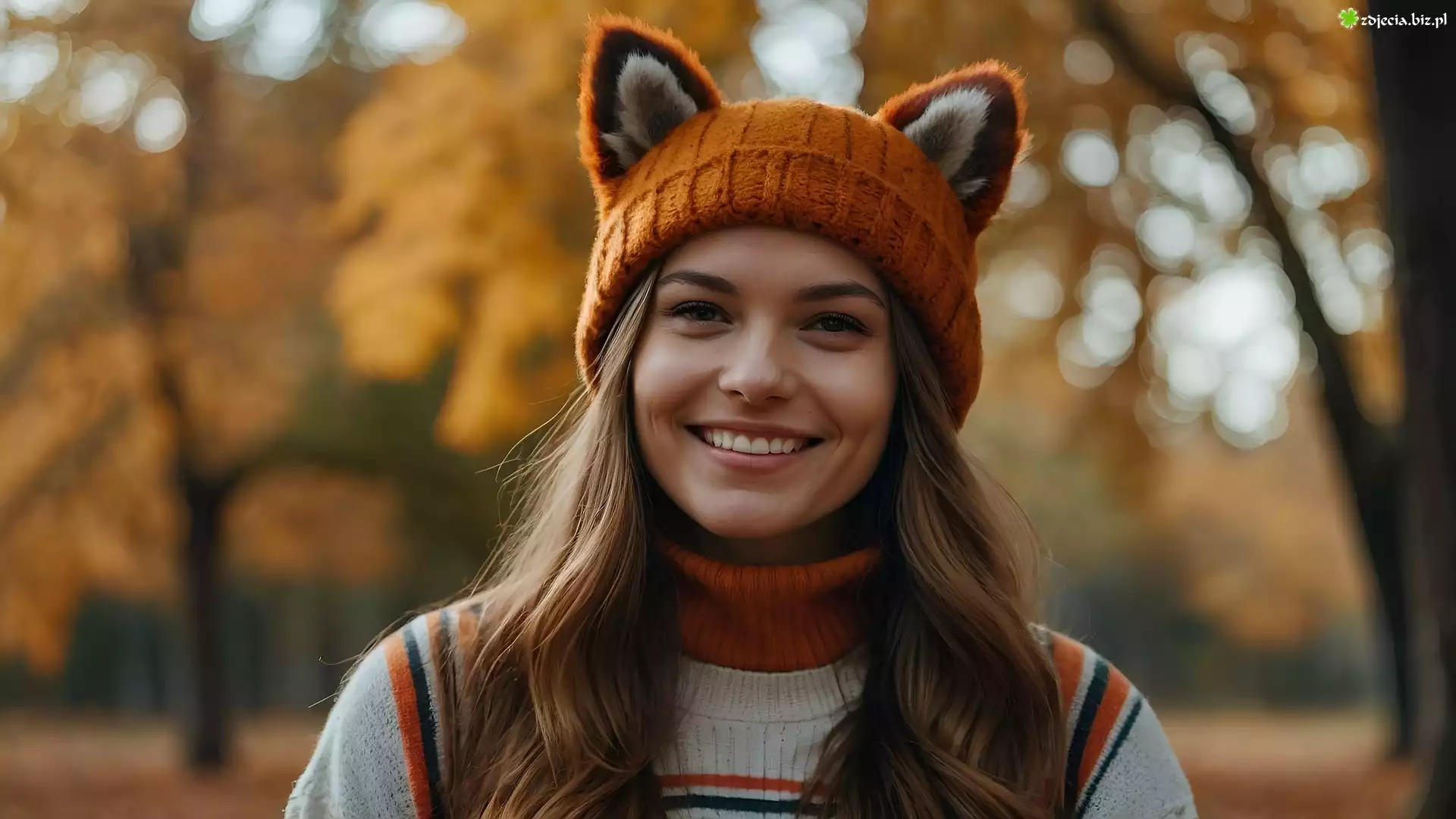 Zdjęcie Dziewczyna, Uśmiech, Czapka, Park, Jesień