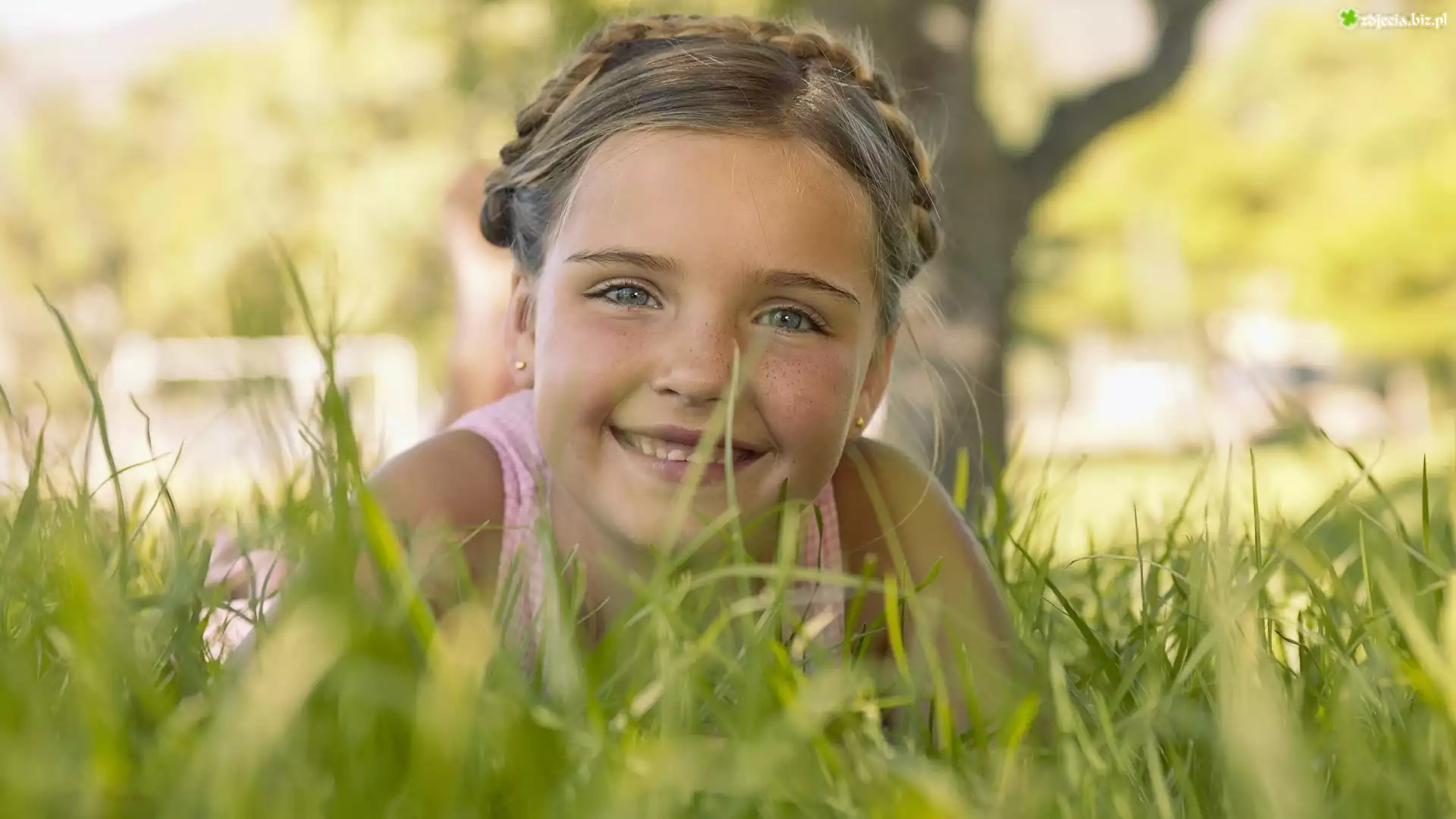 Zdjęcie Dziewczynka, Uśmiech, Trawa