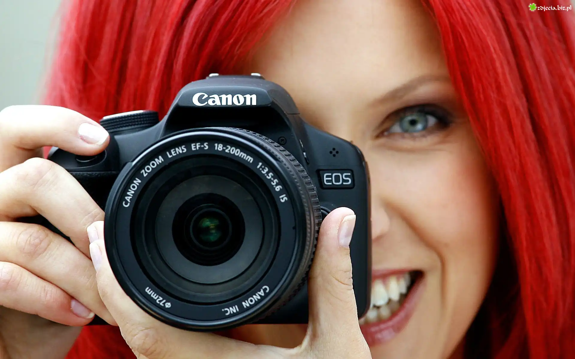 Zdjęcie Uśmiechnięta, Rudowłosa, Dziewczyna, Aparat