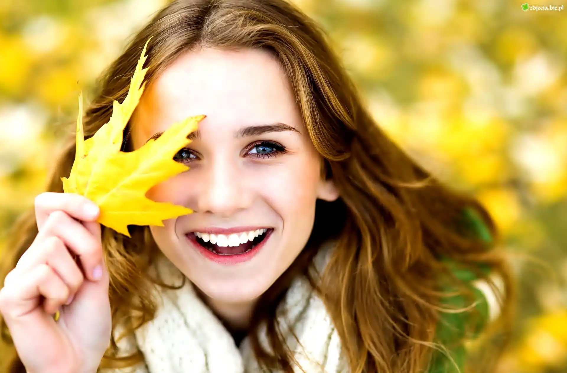 Zdjęcie Uśmiechnięta, Kobieta, Żółty, Liść