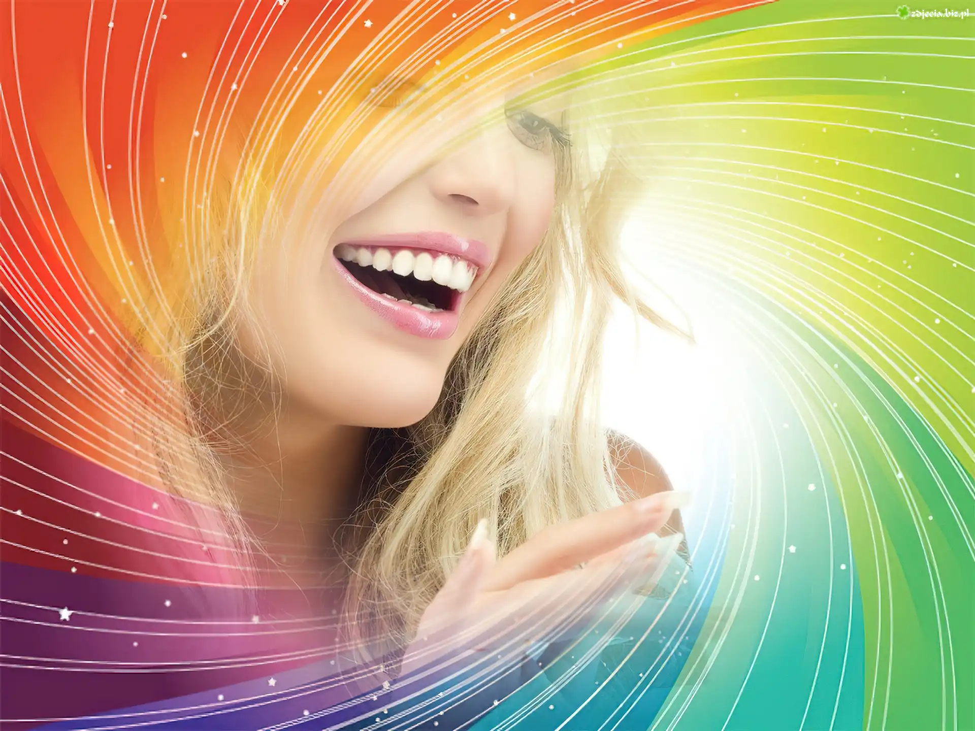 Zdjęcie Uśmiechnięta, Blondynka, Kolorowe, Smugi, Grafika