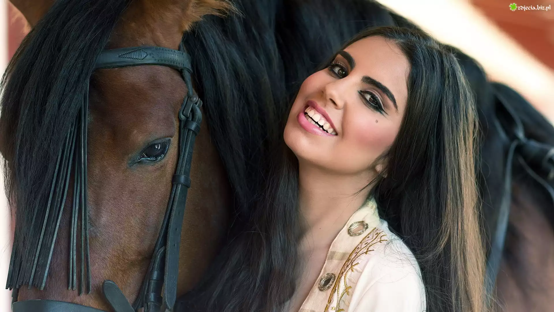 Zdjęcie Uśmiechnięta, Kobieta, Szatynka, Koń