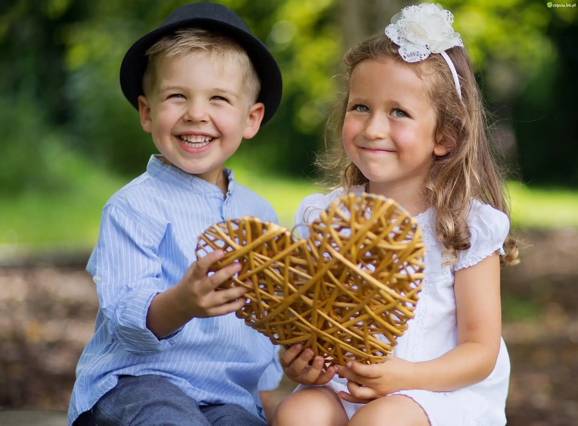 Zdjęcie Uśmiechnięte, Dzieci, Serce, Park, Walentynki