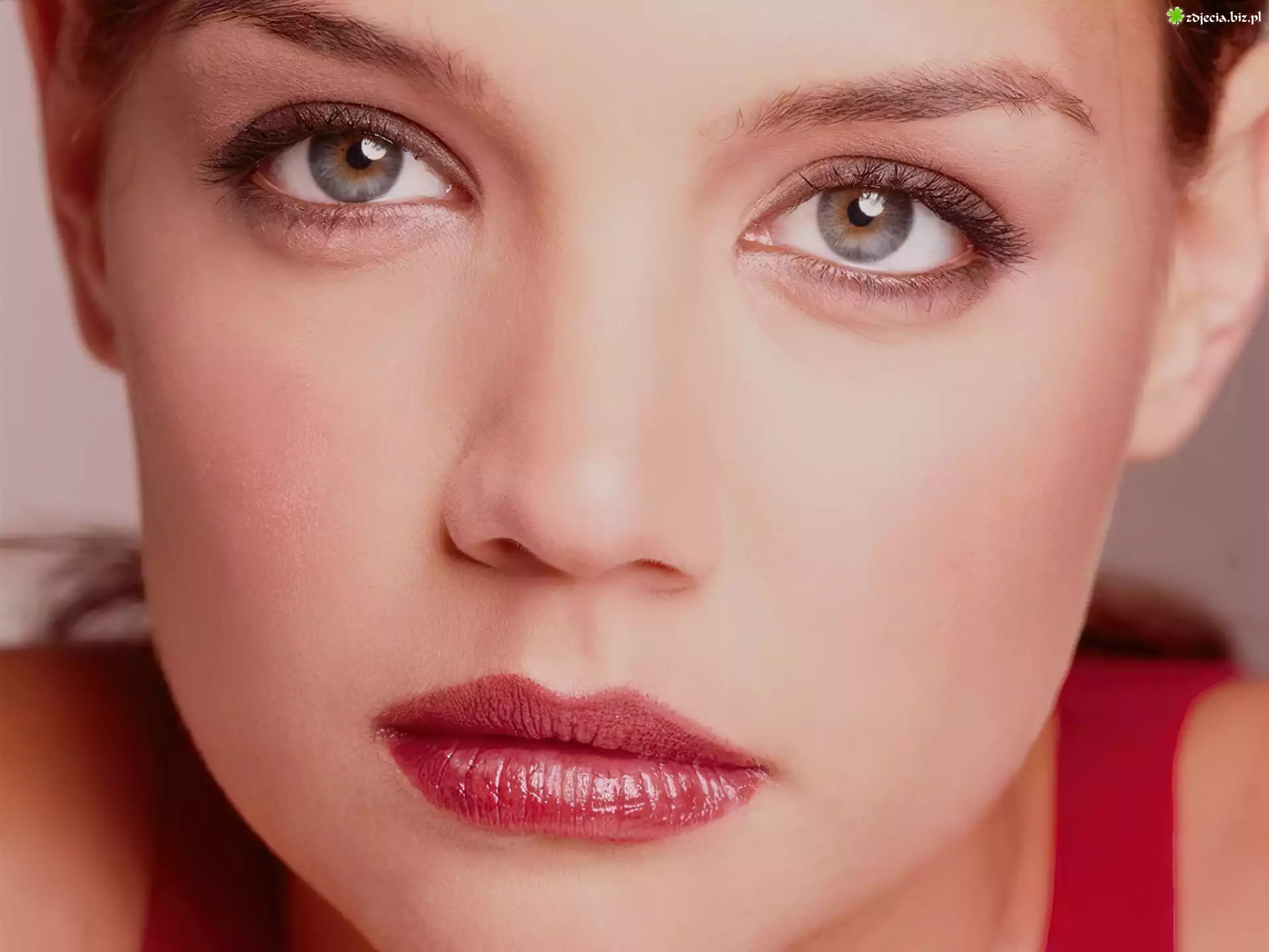 Zdjęcie różowe, usta, duże, oczy, Katie Holmes, szminka