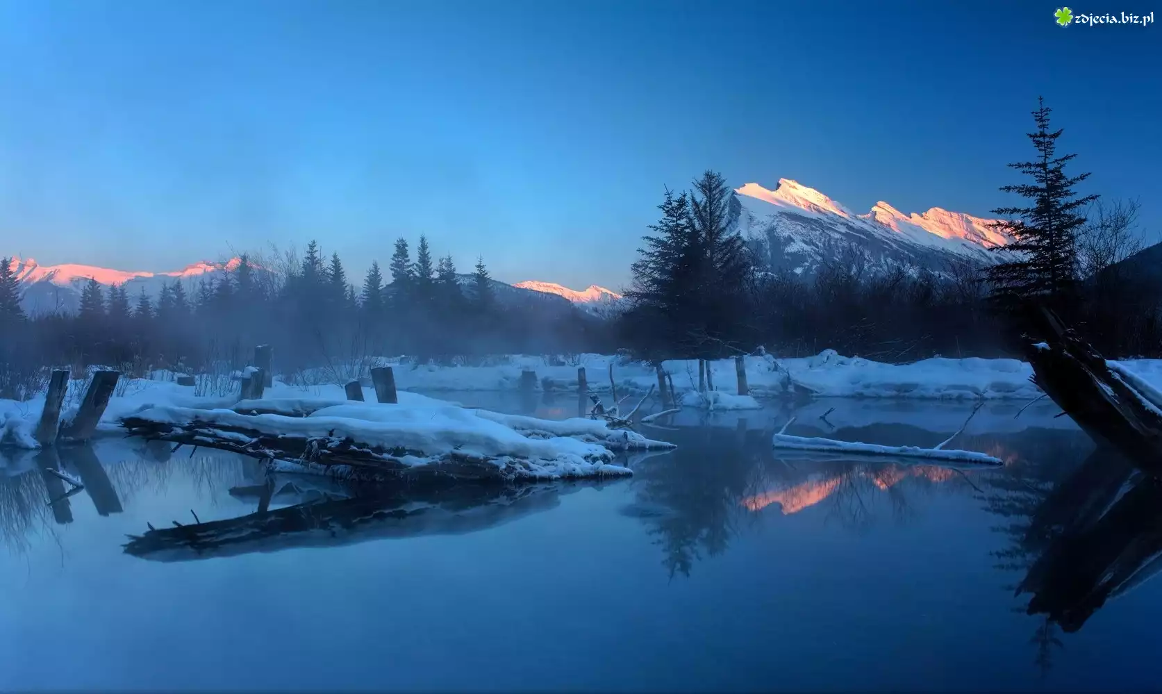Zdjęcie, Kanada, Jezioro Vermilion Lakes, Park Narodowy Banff, Góry, Zima