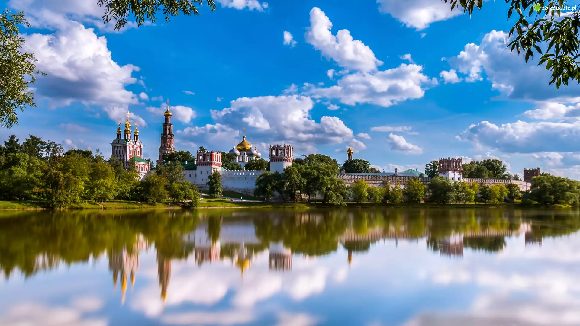 Zdjęcie Rosja, Moskwa, Klasztor, Monaster Nowodziewiczy w Moskwie, Muzeum, Rzeka Moskwa, Drzewa, Chmury |