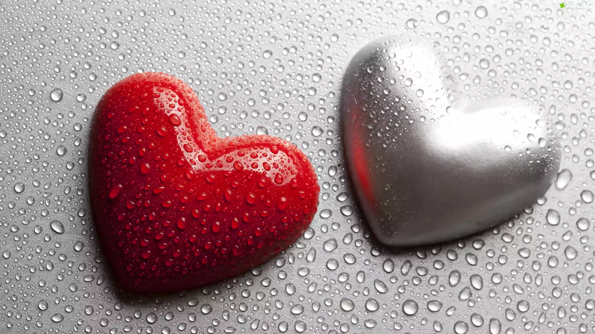 Zdjęcie Walentynki, Serce, Czerwone, Srebrne, Miłość, Krople