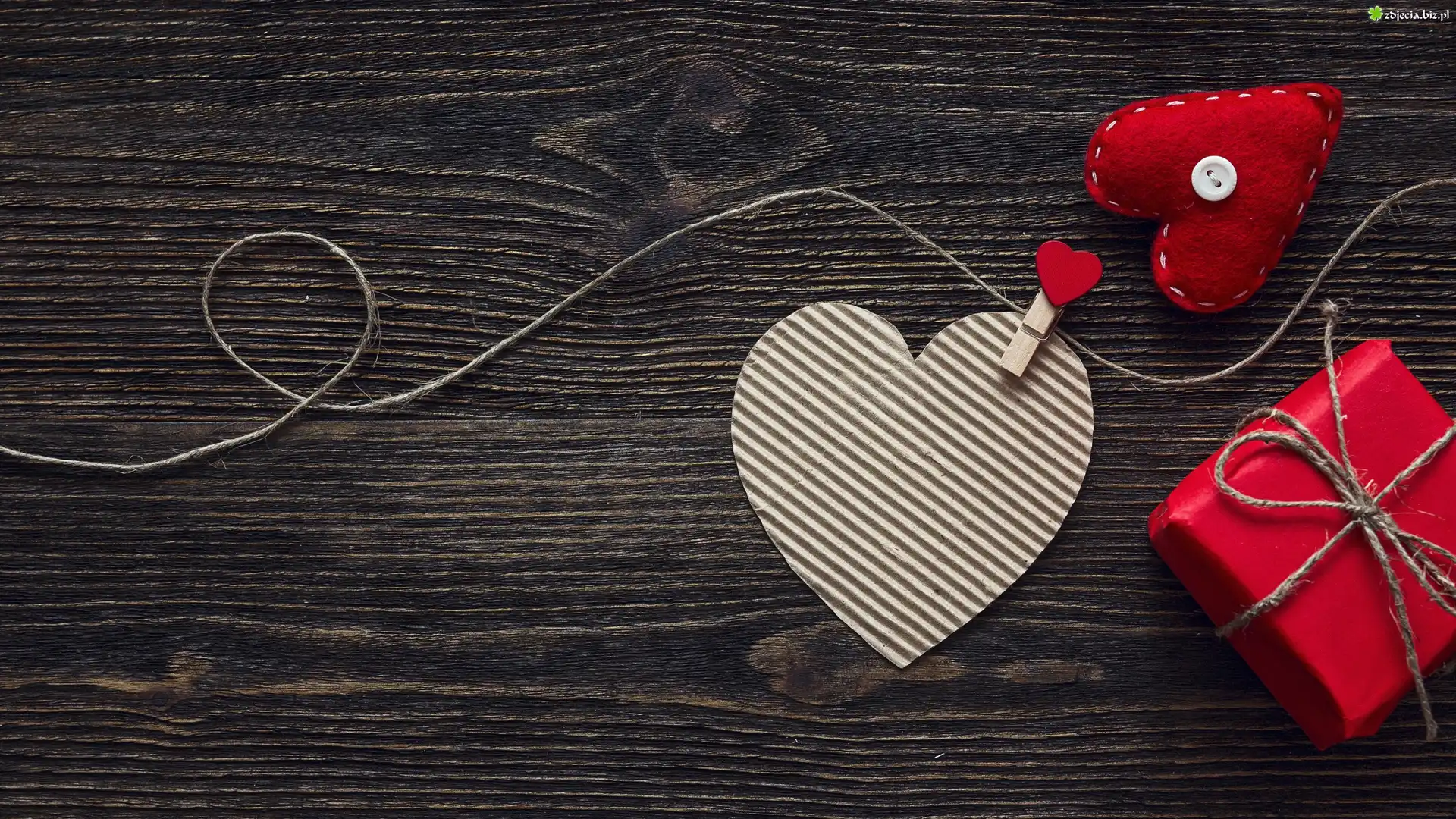 Zdjęcie Miłosne, Walentynki, Serca, Prezent, Sznurek, Klamerka, Deski