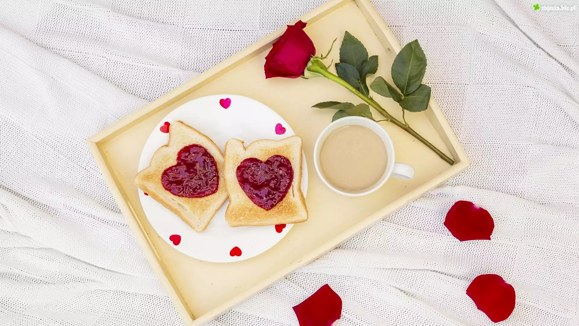 Zdjęcie Walentynki, Śniadanie, Tosty, Kawa, Róża, Taca