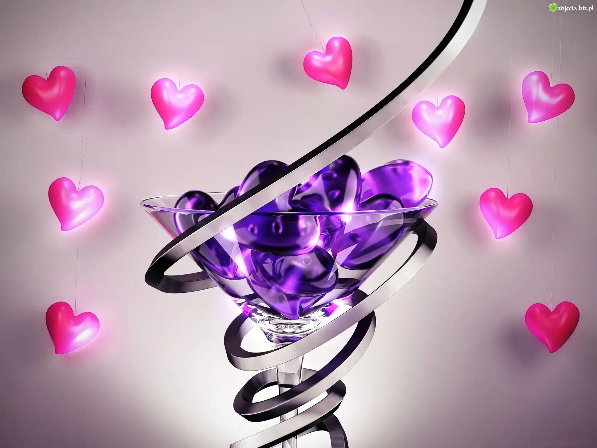 Zdjęcie Walentynki, Różowe, Fioletowe, Serca, Kieliszek