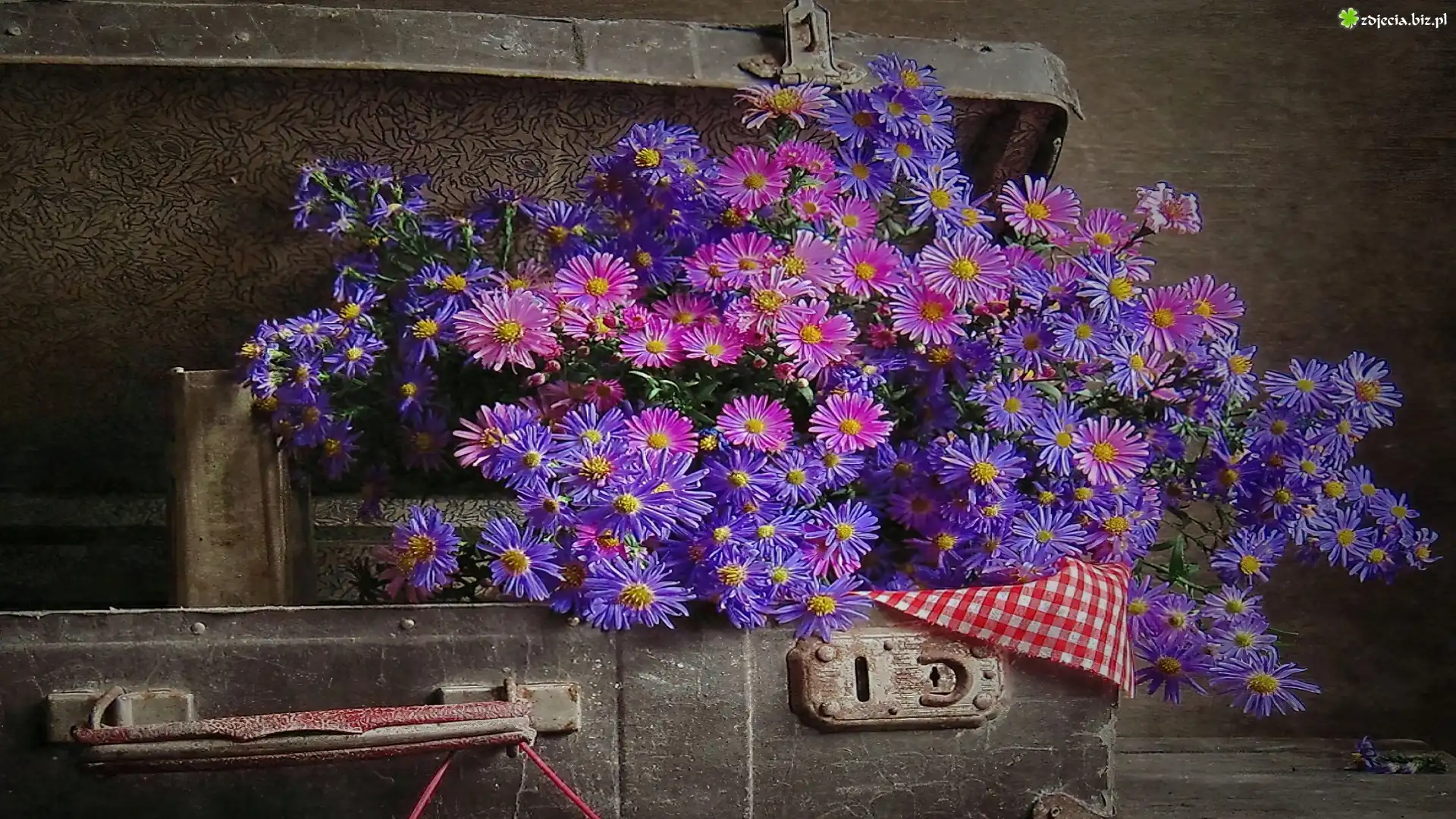 Zdjęcie, Stara, Walizka, Astry jesienne