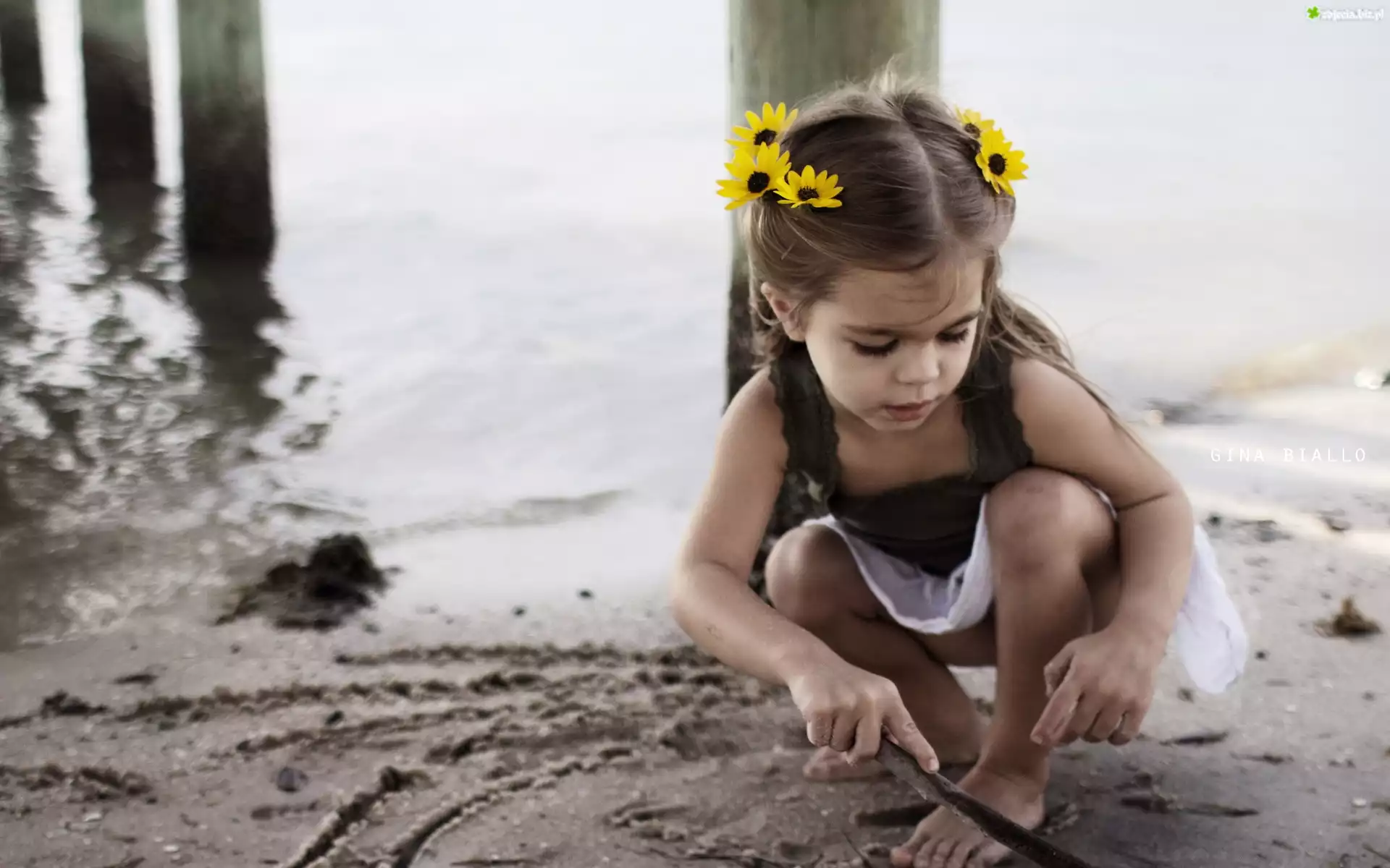 Zdjęcie, Dziewczynka, Warkoczyki, Kwiatki