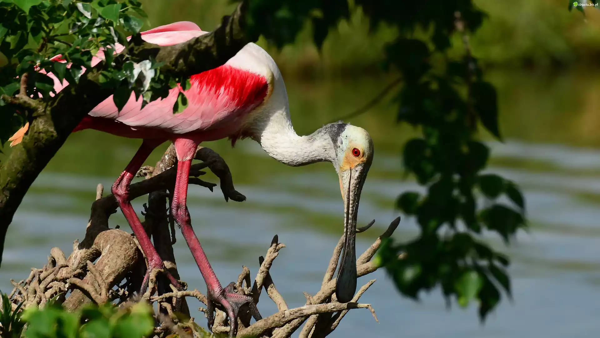 Zdjęcie Warzęcha, Woda, Drzewo, Gałęzie, Liście