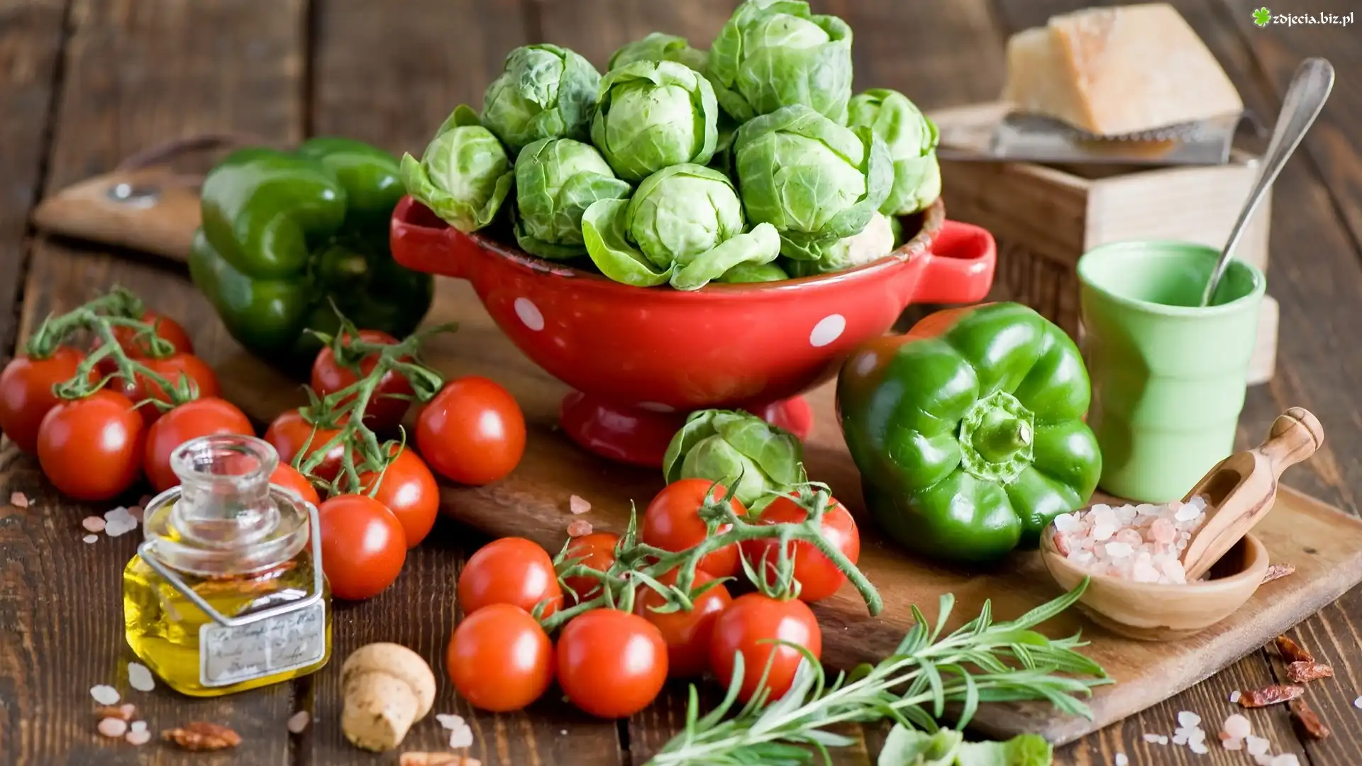 Zdjęcie, Warzywa, Pomidory, Papryka, Brukselka