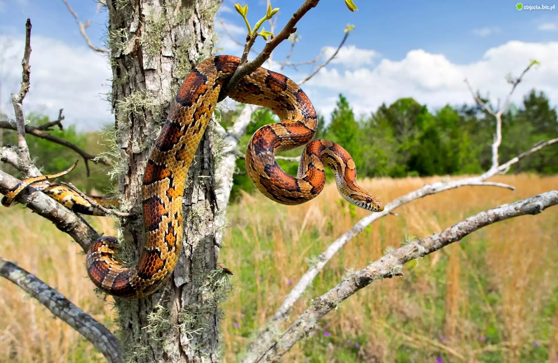 Zdjęcie, Wąż zbożowy, Suche, Drzewo