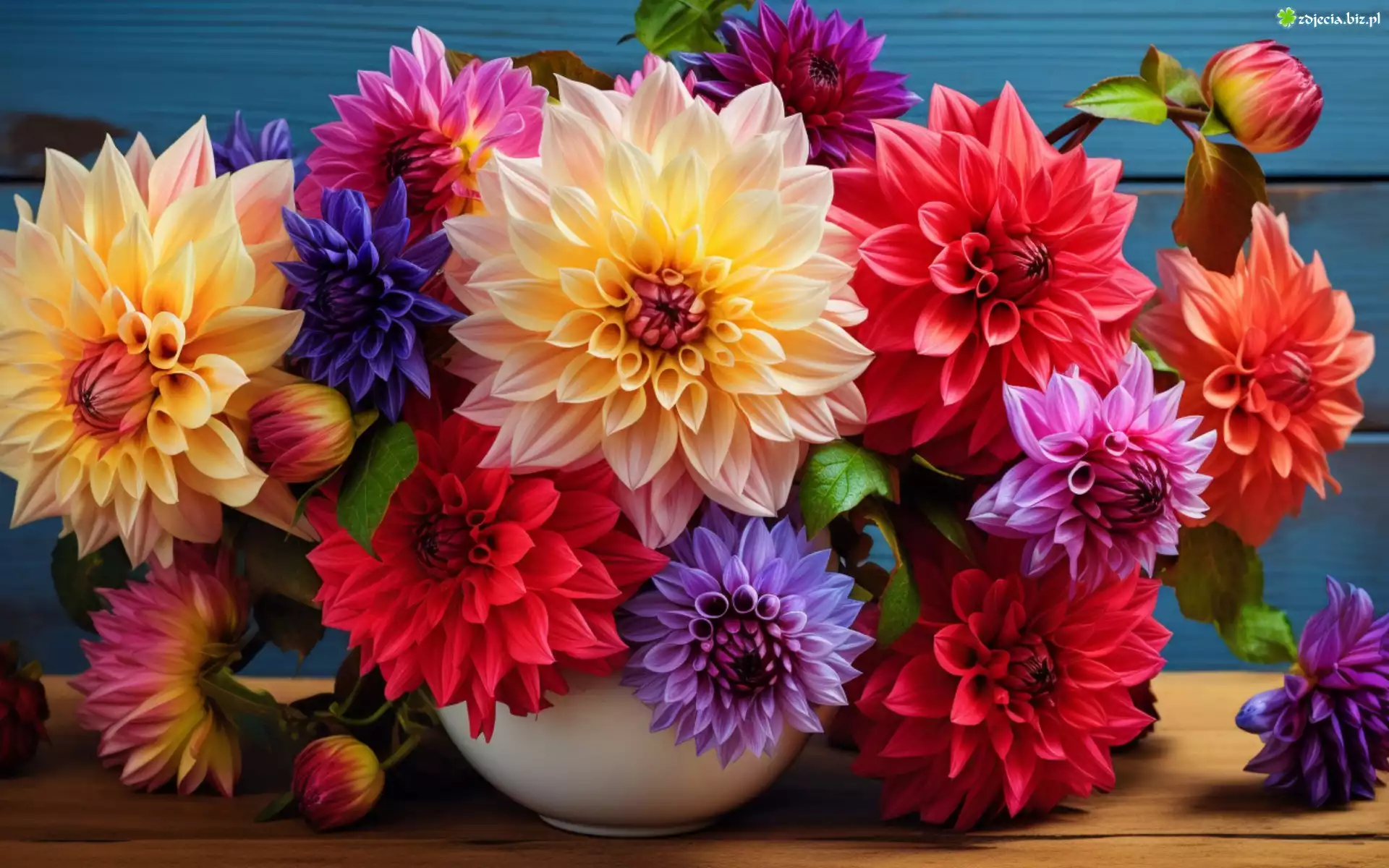 Zdjęcie Dalie, Kolorowy, Bukiet, Wazon