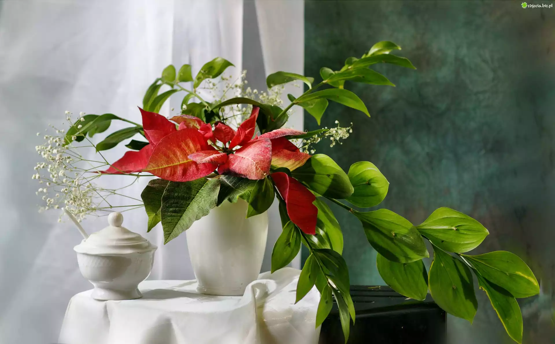 Zdjęcie Wazon, Stolik, Kompozycja, Gwiazda betlejemska