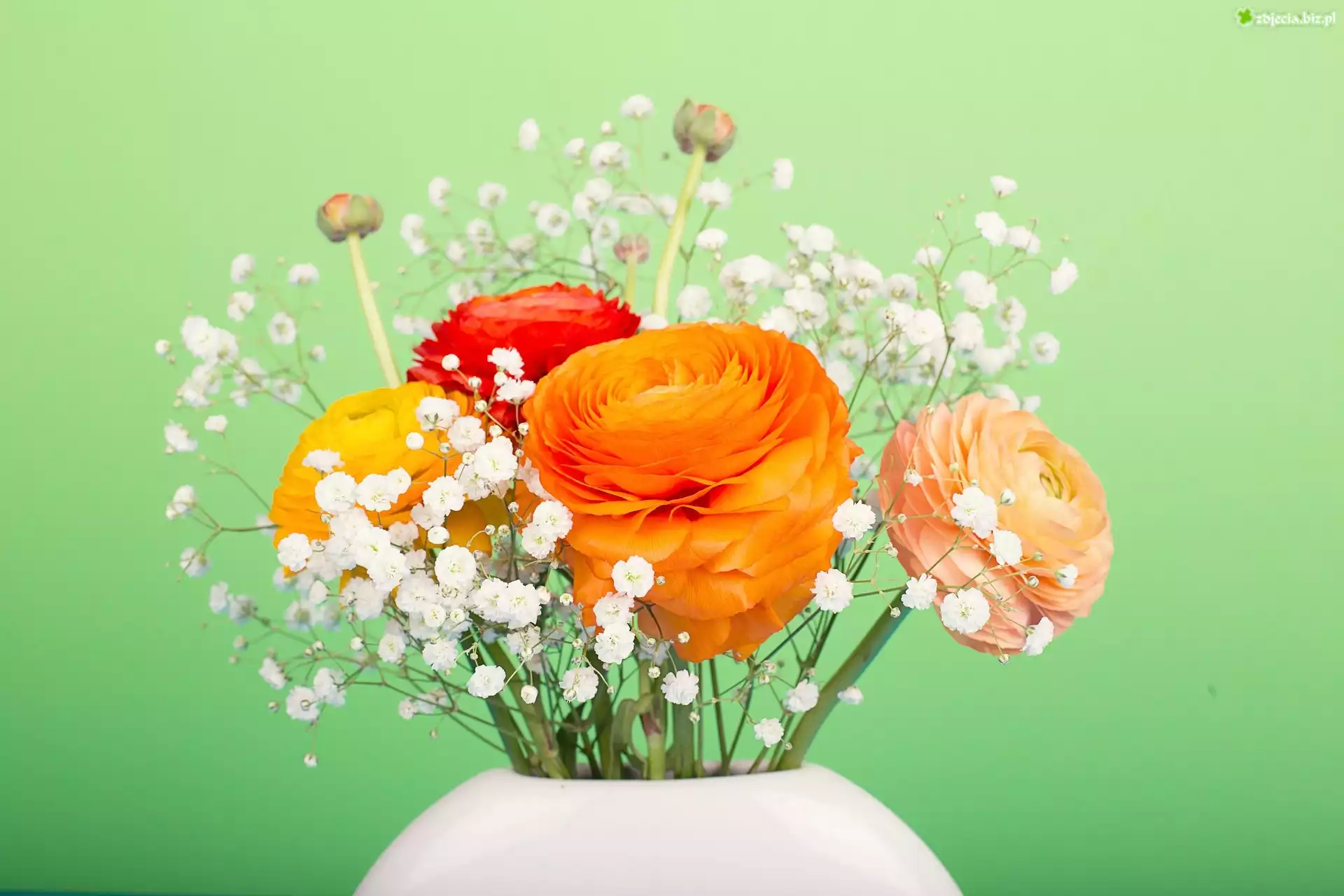 Zdjęcie, Wazon, Kolorowe, Jaskry, Gipsówka