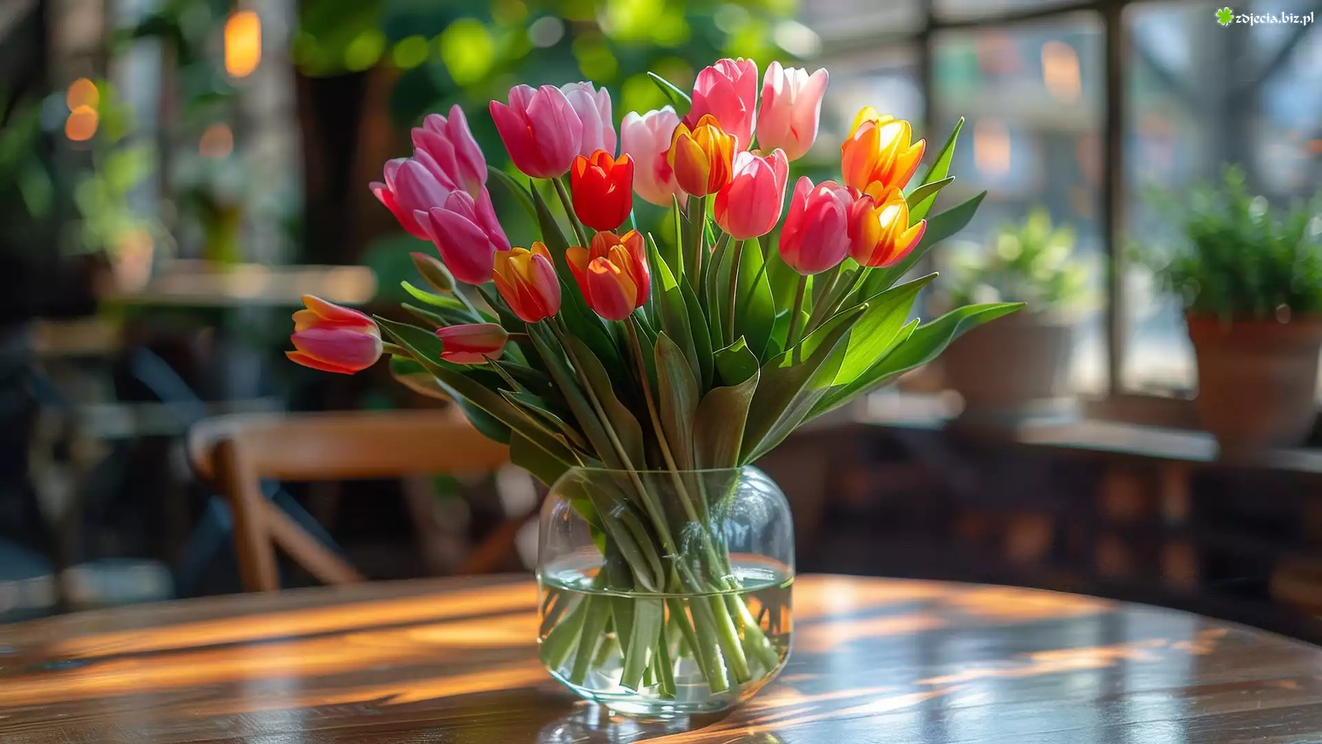 Zdjęcie Kwiaty, Tulipany, Kolorowe, Wazon