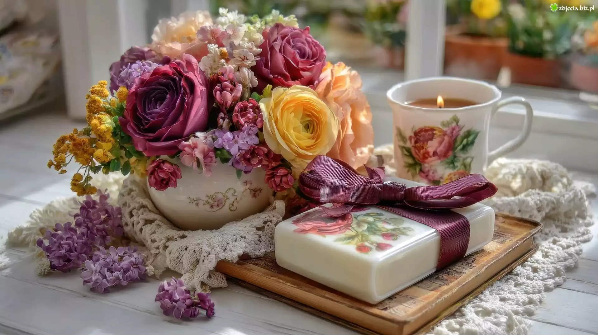 Zdjęcie, Kwiaty, Wazon, Świeca, Prezent, Kompozycja