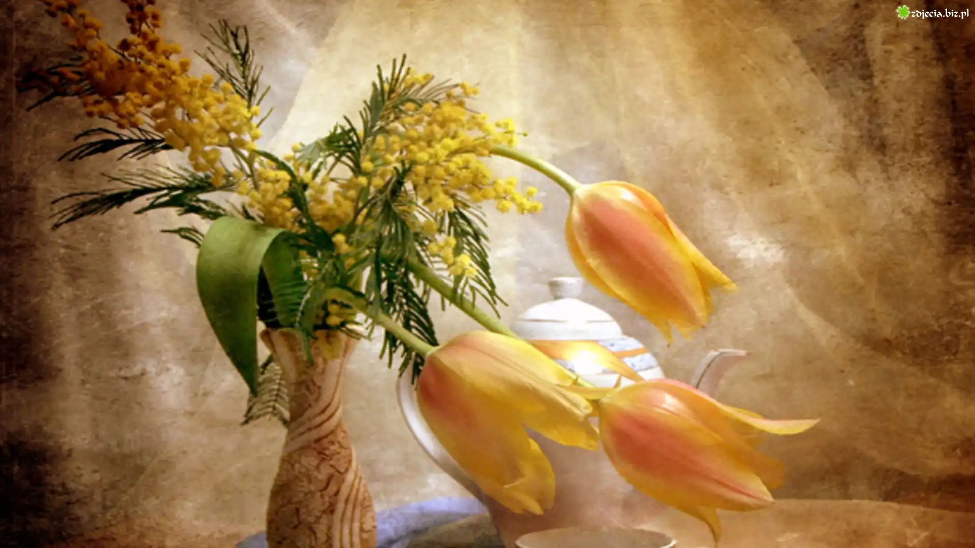 Zdjęcie Tulipany, Wazon, Dzbanek