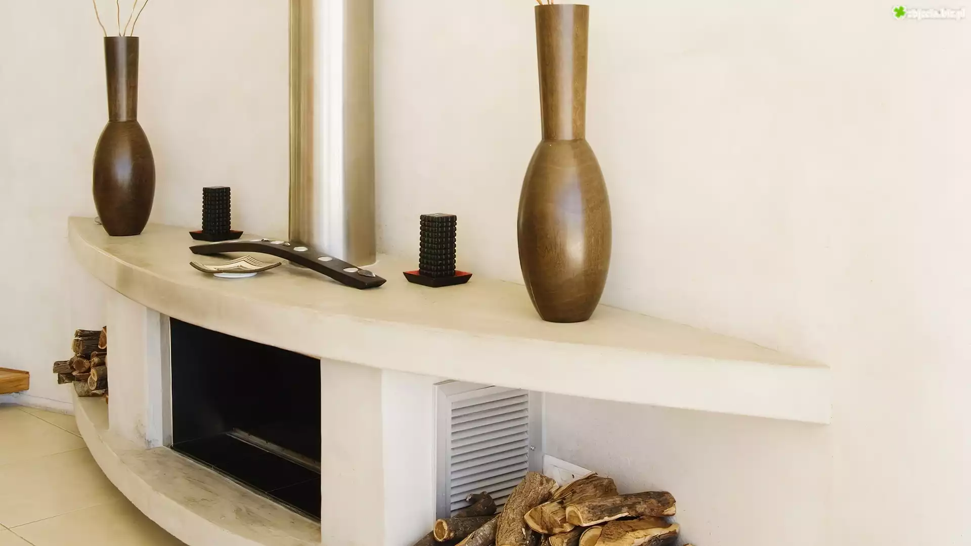 Zdjęcie Kominek, Wazony, Drewno