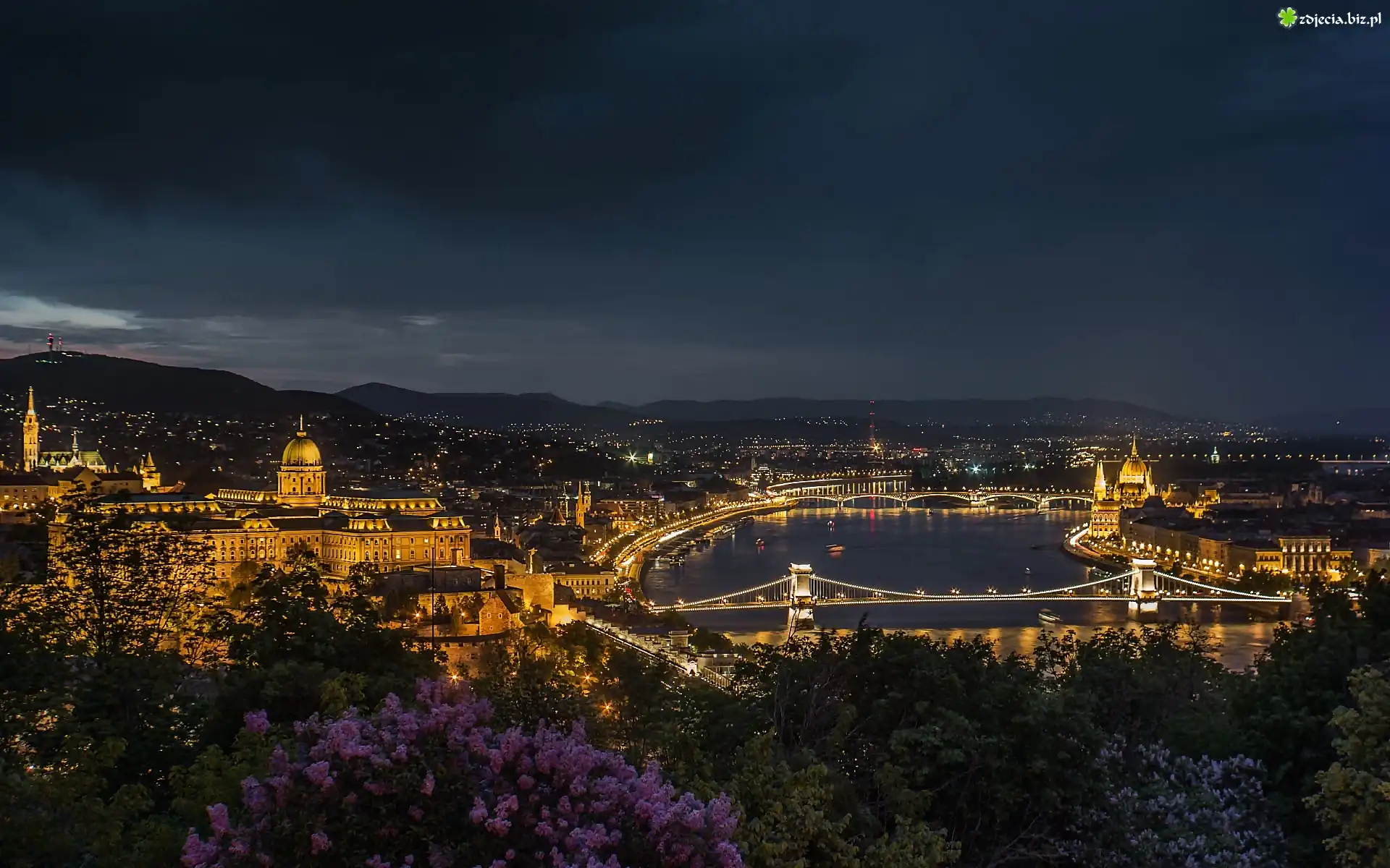 Zdjęcie Węgry, Budapeszt, Miasto, Nocą, Rzeka, Most