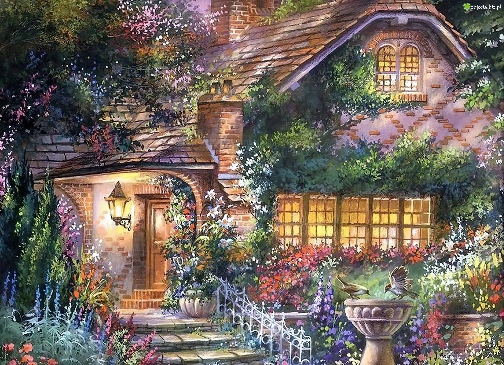 Zdjęcie Wejście, Dom, Ogród, Kwiaty