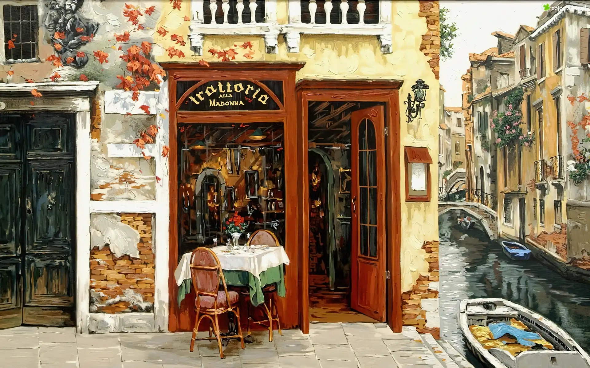 Zdjęcie Wenecja, Domy, Kanał, Kawiarenka, Ulica
