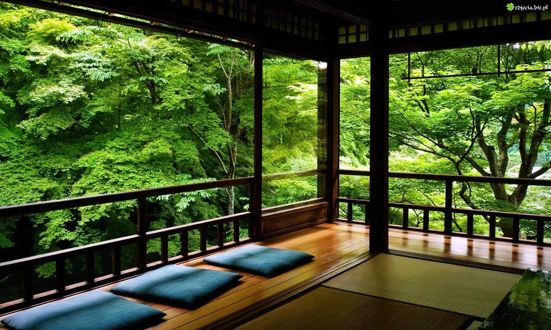 Zdjęcie Weranda, Relaks, Drzewa, Zieleń