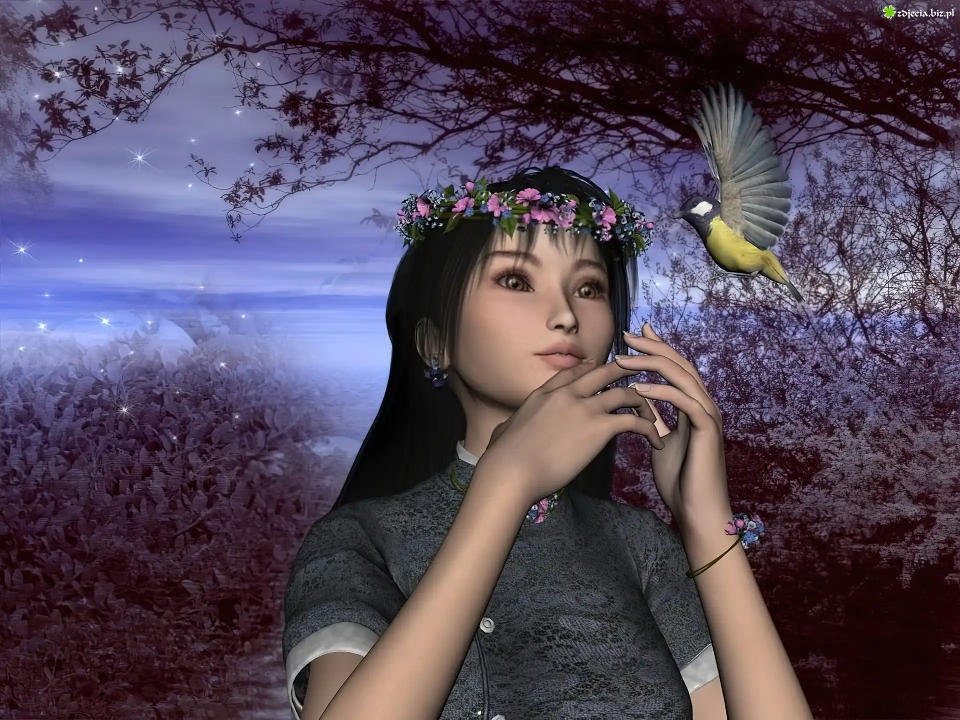 Zdjęcie Dziewczyna, Wianek, Ptaszek