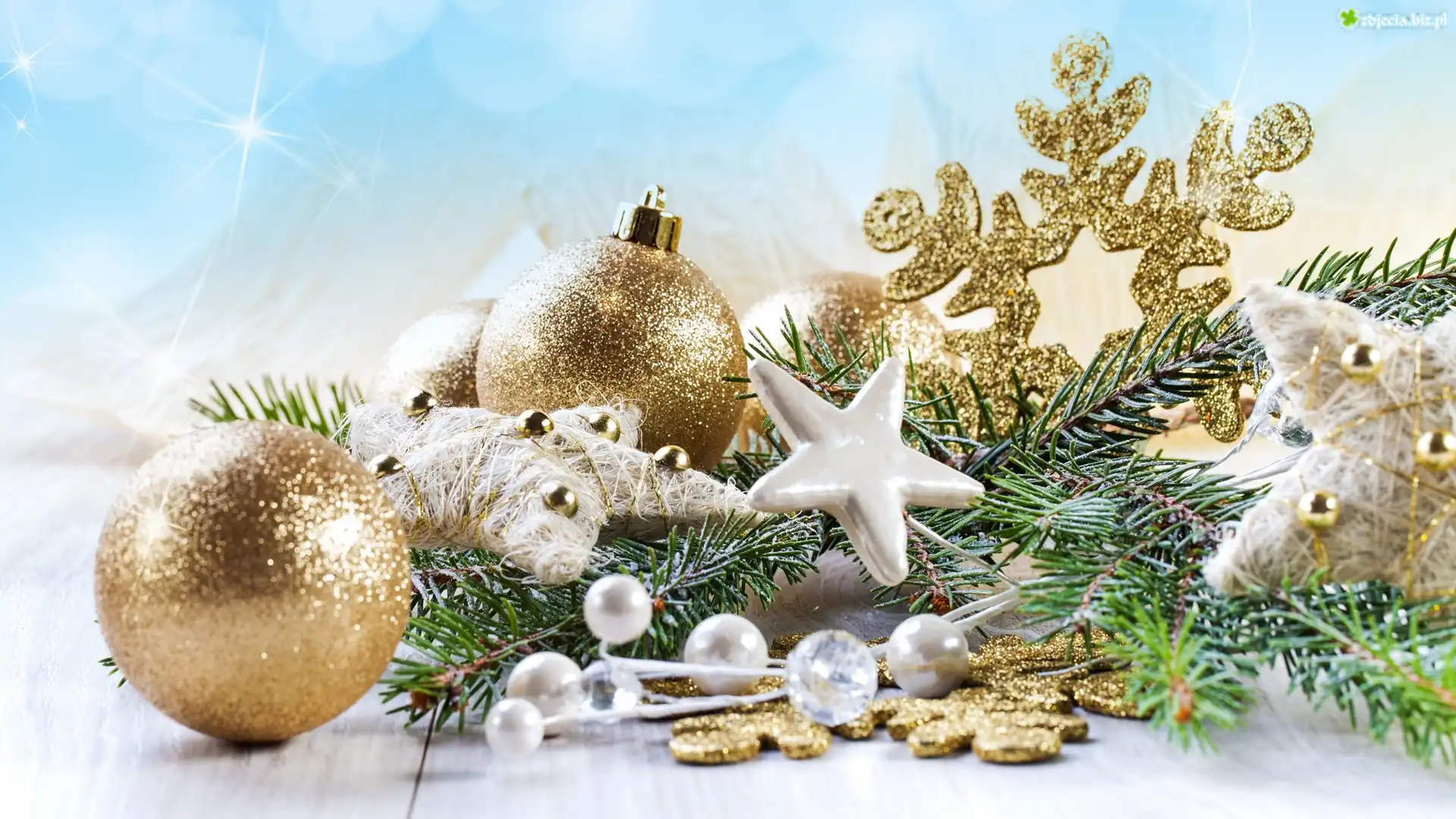 Zdjęcie Świąteczna, Dekoracja, Bombki, Gwiazdki, Ozdoby, Gałązki