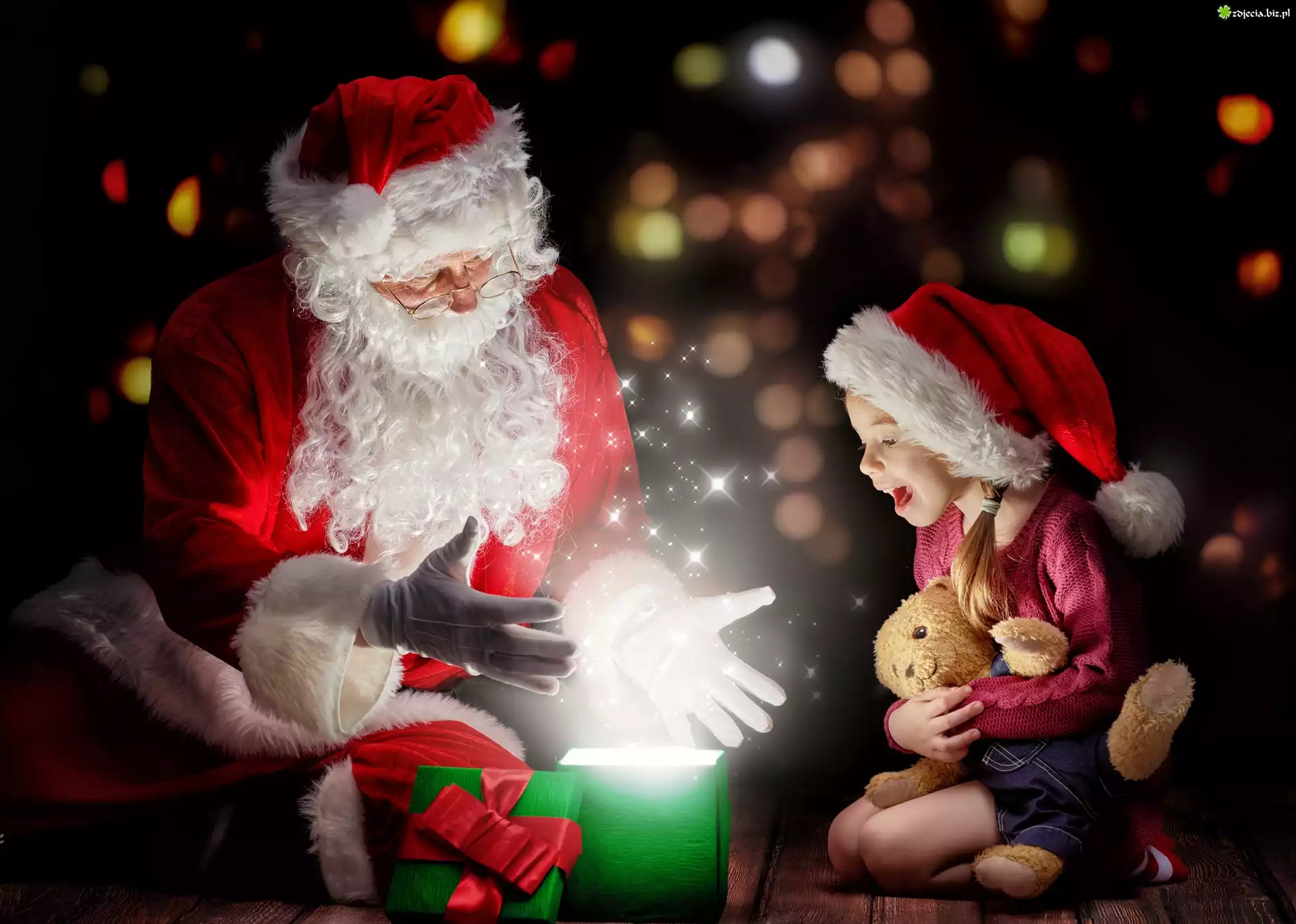 Zdjęcie Świąteczne, Mikołaj, Prezent, Dziecko