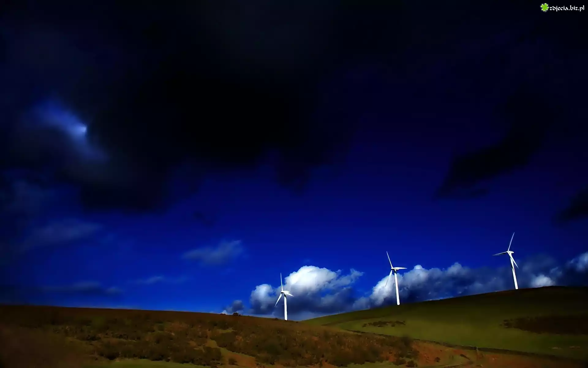 Zdjęcie Wiatraki, Pole, Chmurki, Niebo
