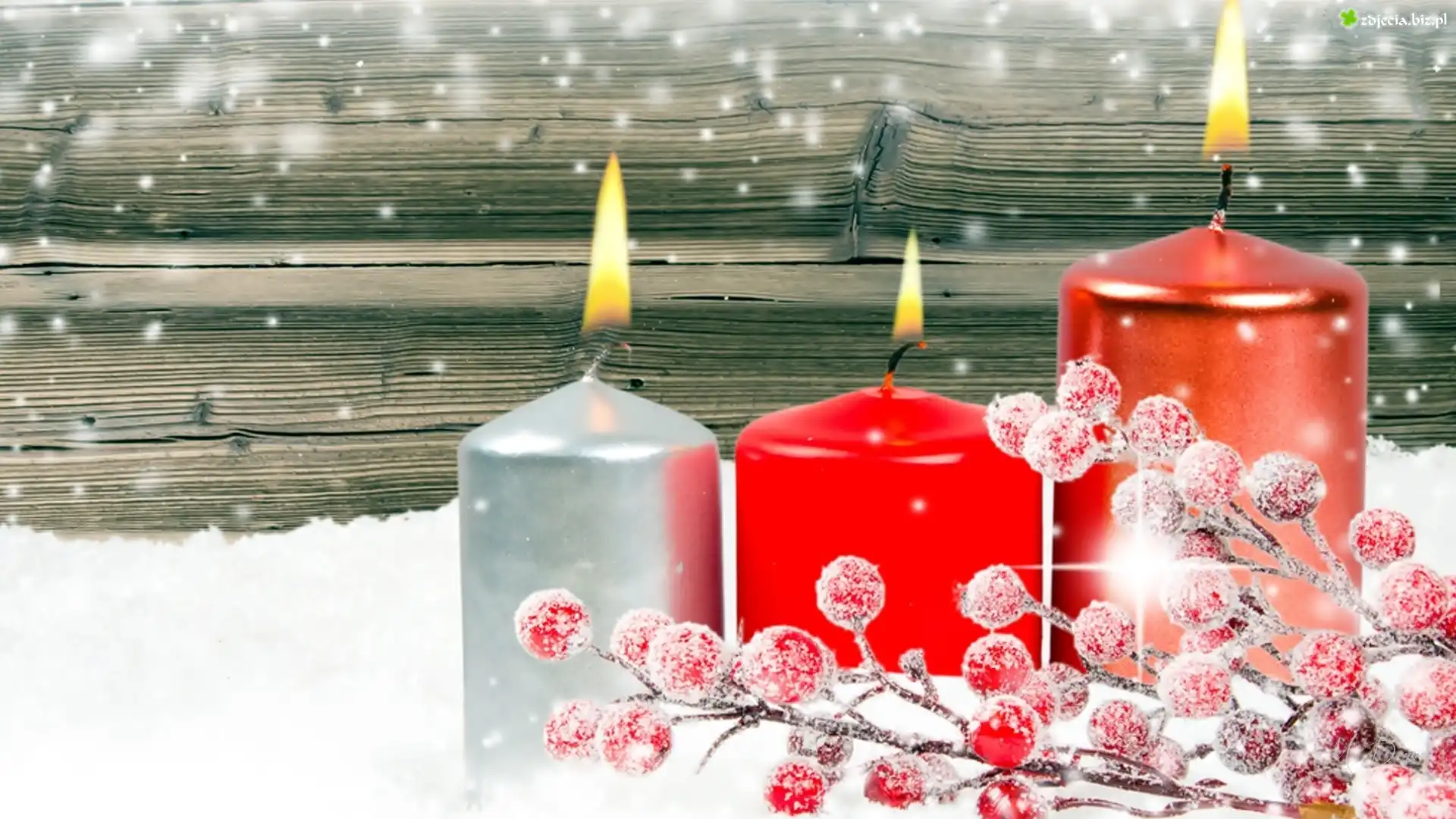 Zdjęcie Świece, Ośnieżona, Gałązka, Śnieg, Dekoracja, Świąteczna