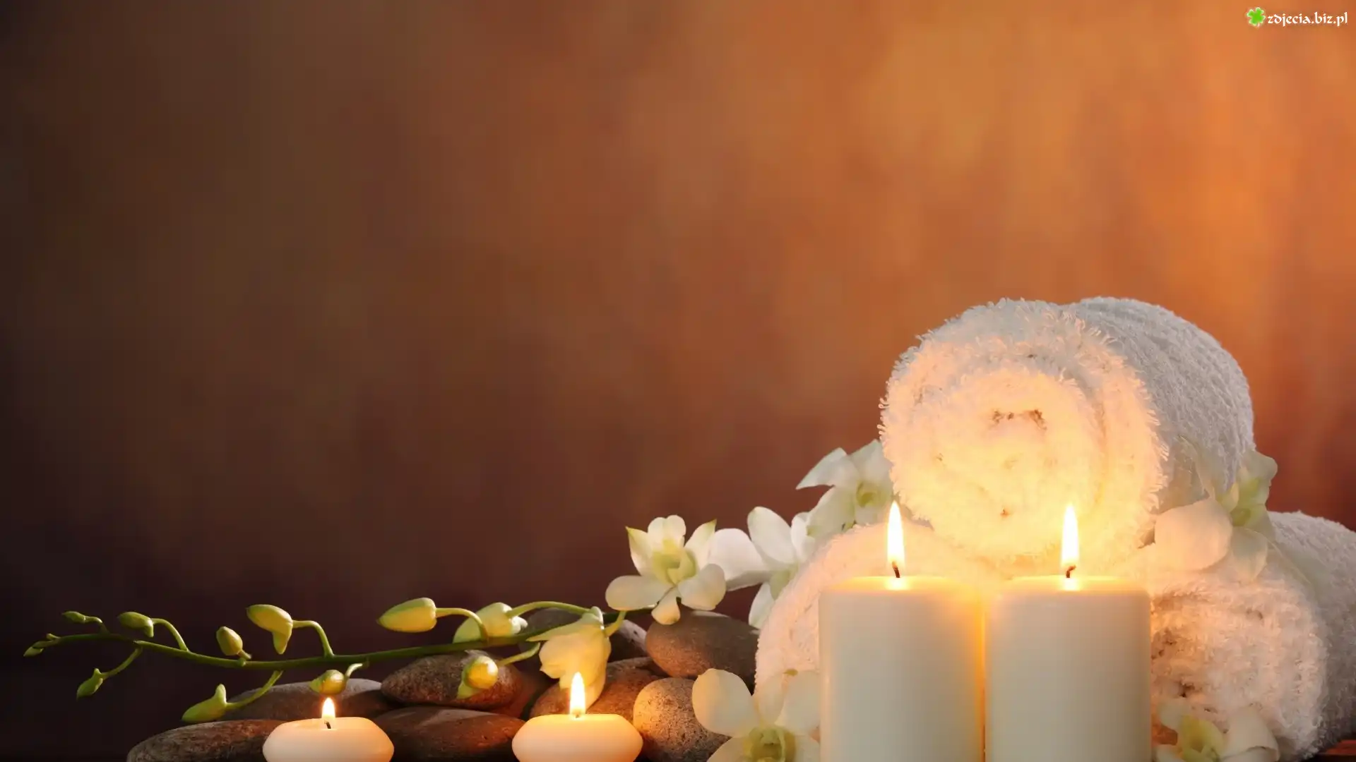 Zdjęcie Spa, Świeczki, Kamienie, Ręczniki