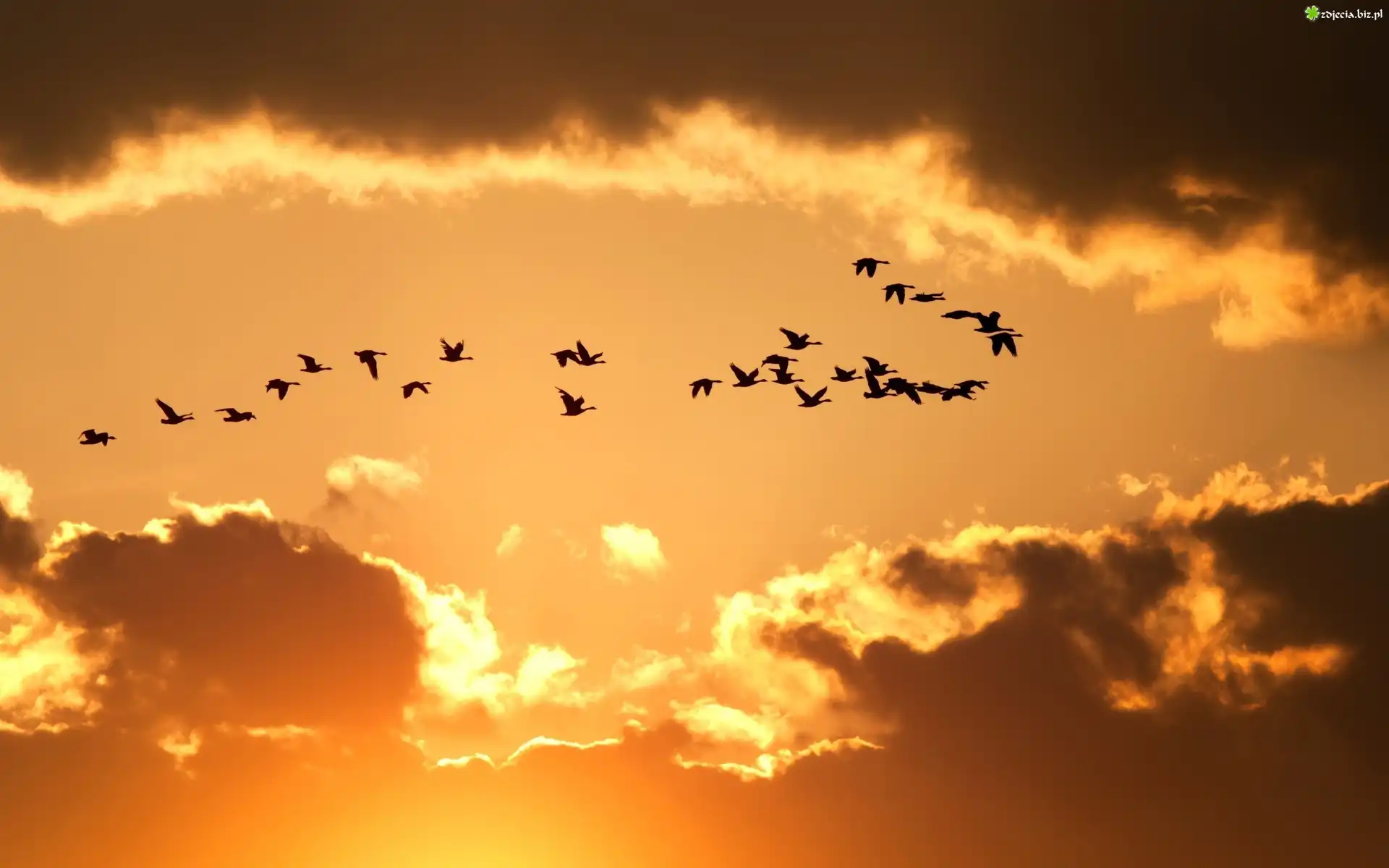 Zdjęcie Wieczór, Niebo, Chmury, Ptaki