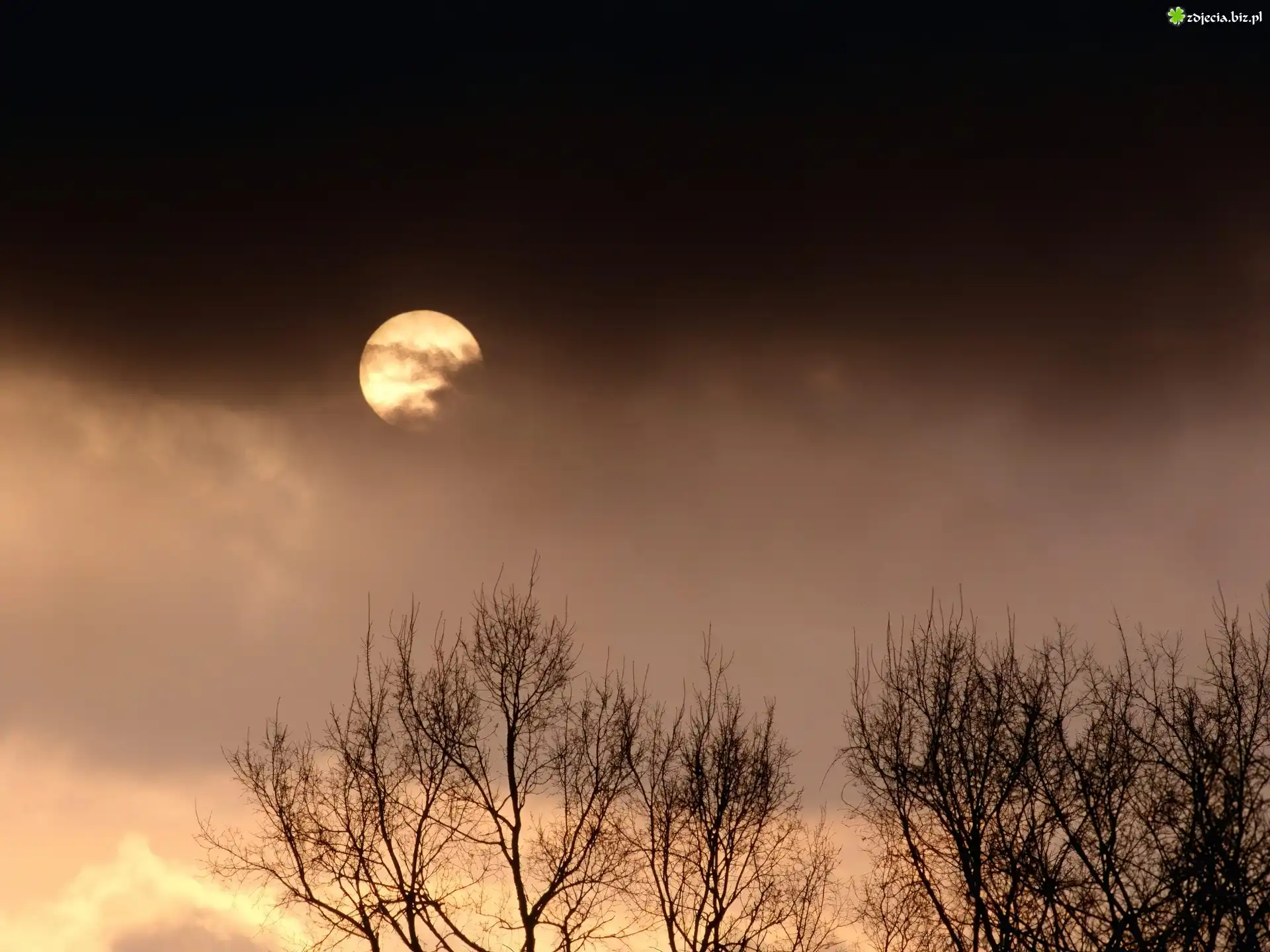 Zdjęcie Wieczór, Wierzchołki, Drzew, Księżyc