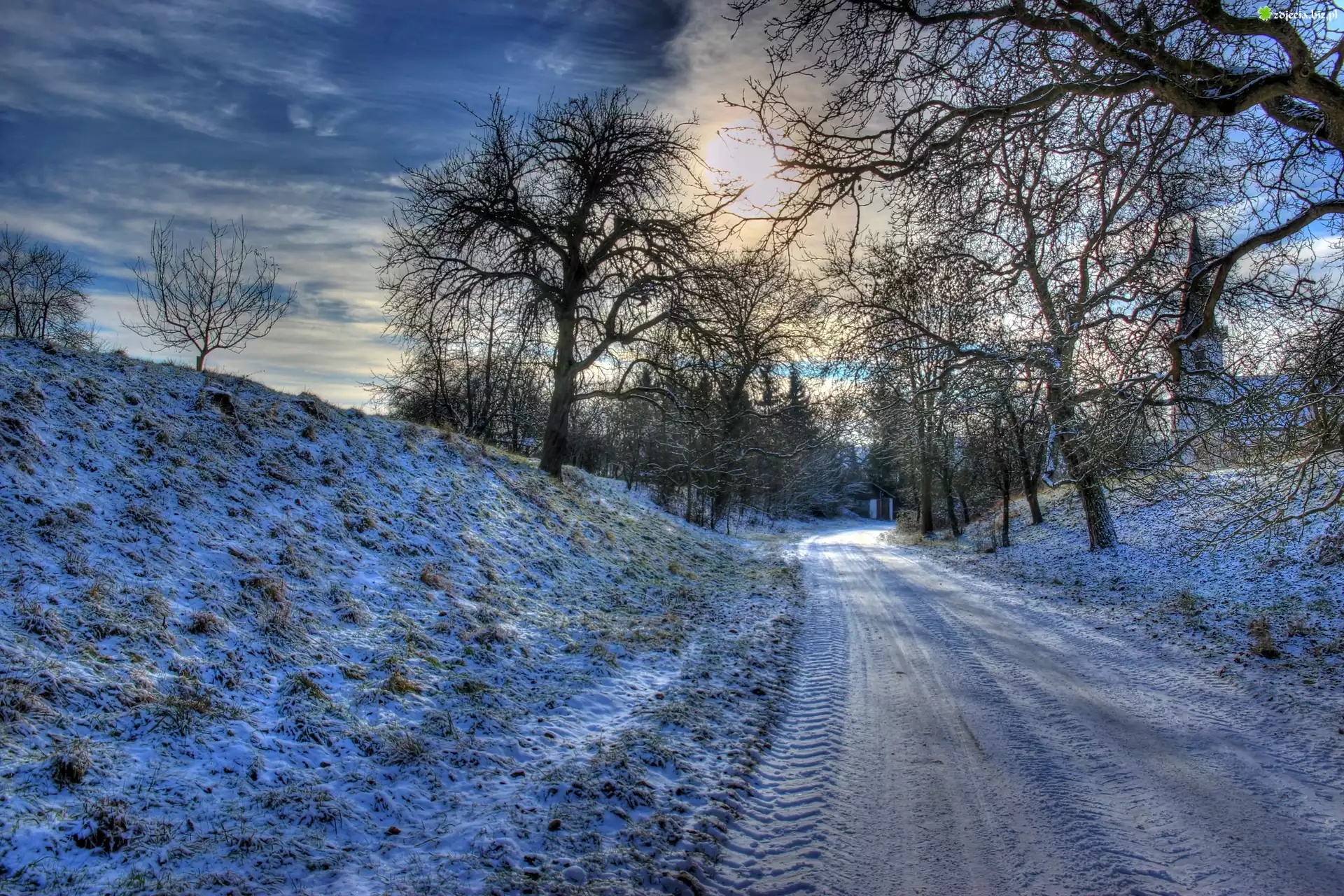 Zdjęcie, Wiejska, Droga, Kościół, Drzewa