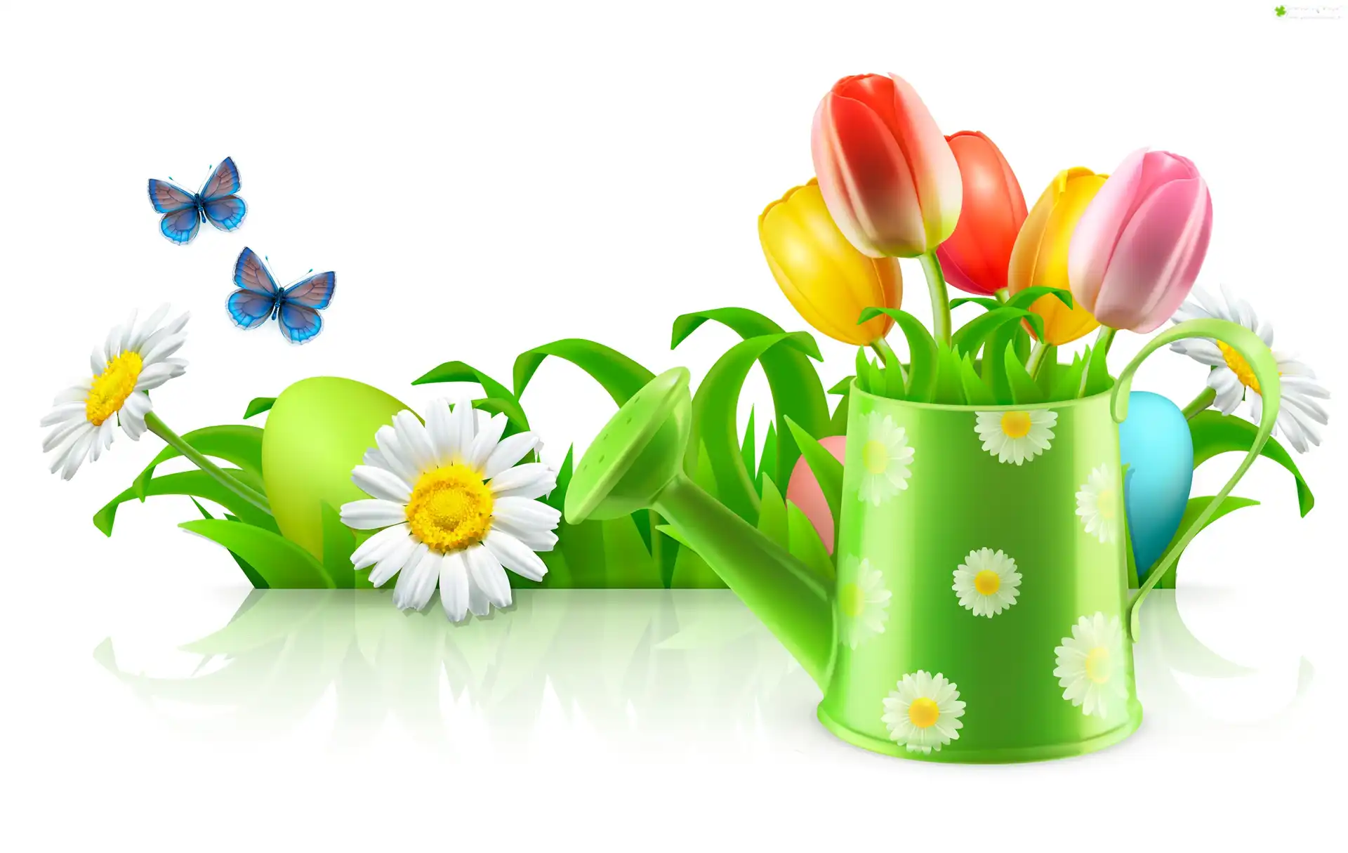 Zdjęcie Kompozycja, Wielkanoc, Pisanki, Konewka, Kwiaty, Motylki, Grafika 2D