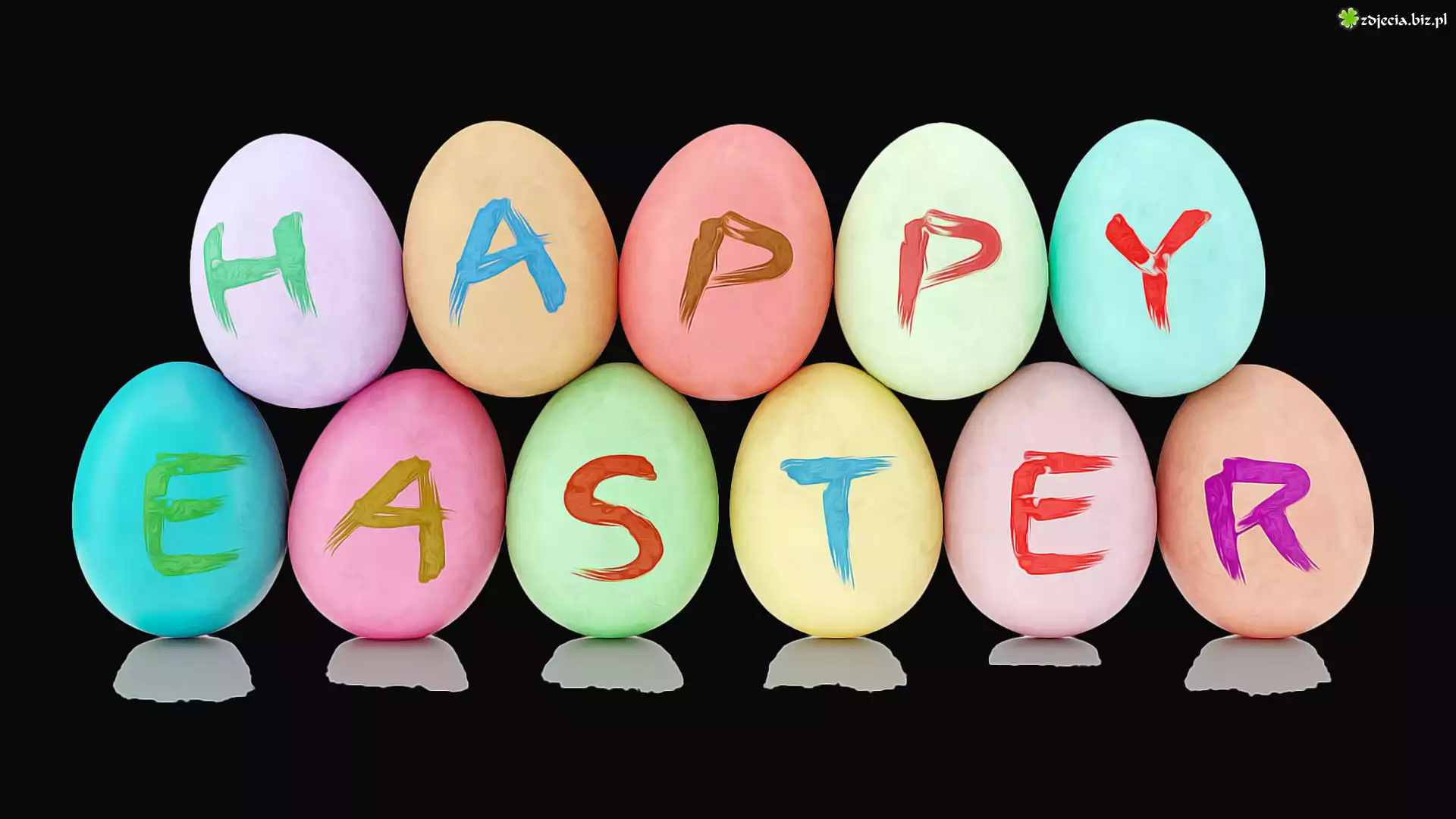 Zdjęcie Wielkanoc, Jajka, Życzenia, Czarne tło