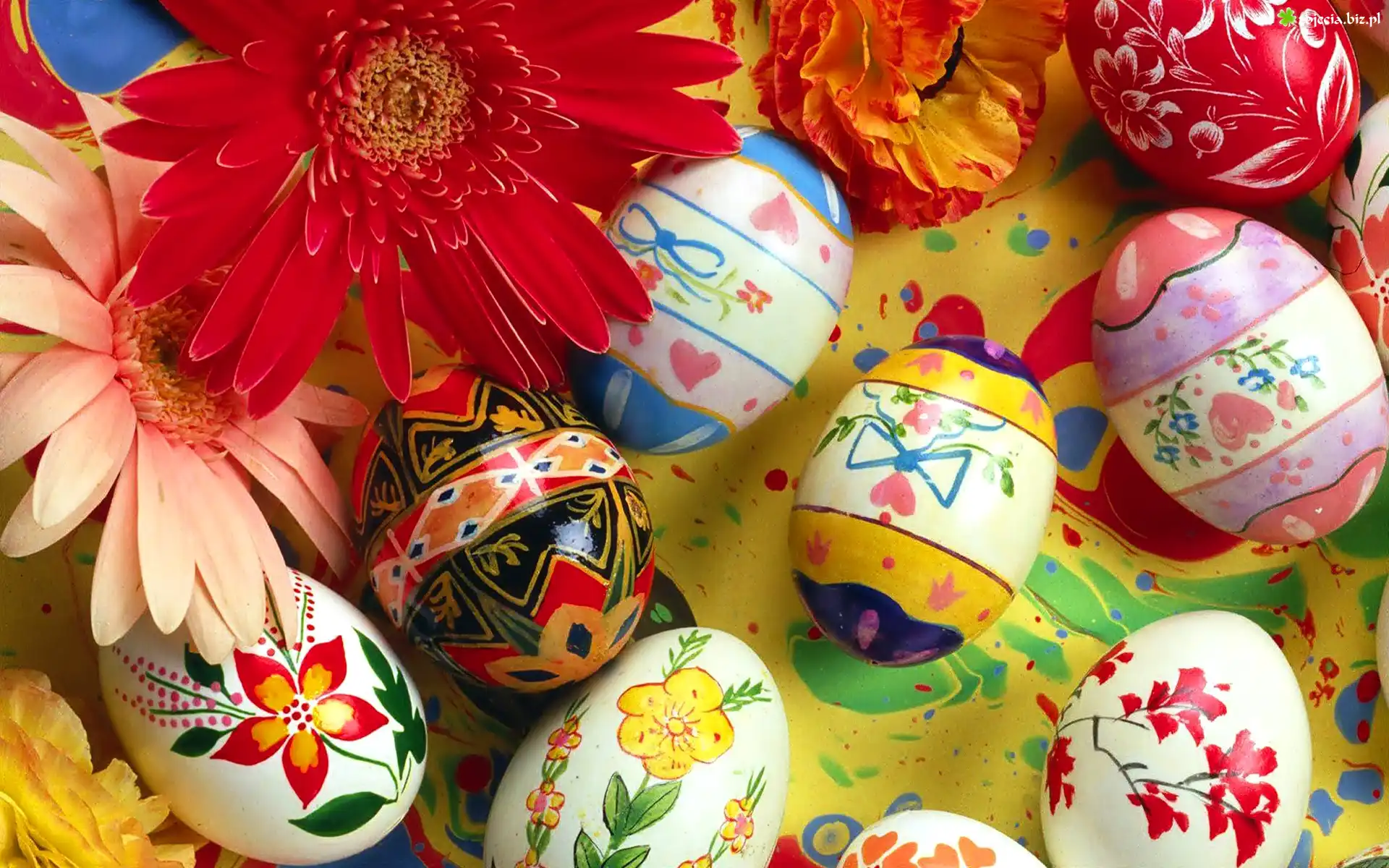 Zdjęcie Wielkanoc, Kolorowe, Malowane, Jaja, Kwiaty