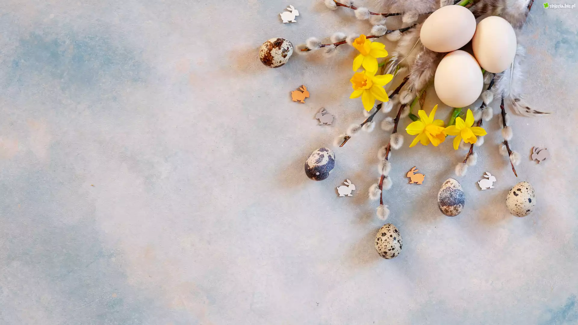 Zdjęcie Wielkanoc, Pisanki, Jajka, Żonkile