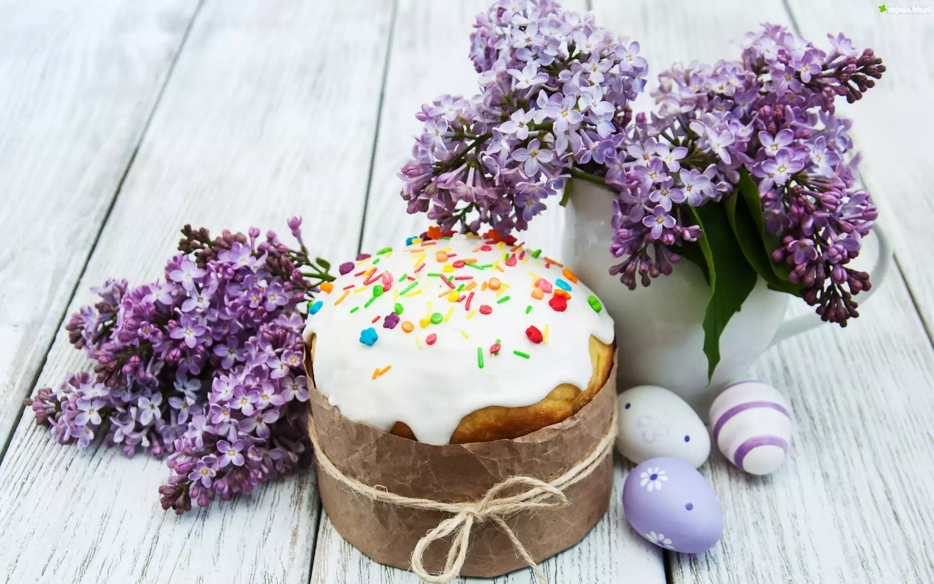 Zdjęcie Kompozycja, Wielkanoc, Fioletowy, Bez, Pisanki, Babka, Ciasto