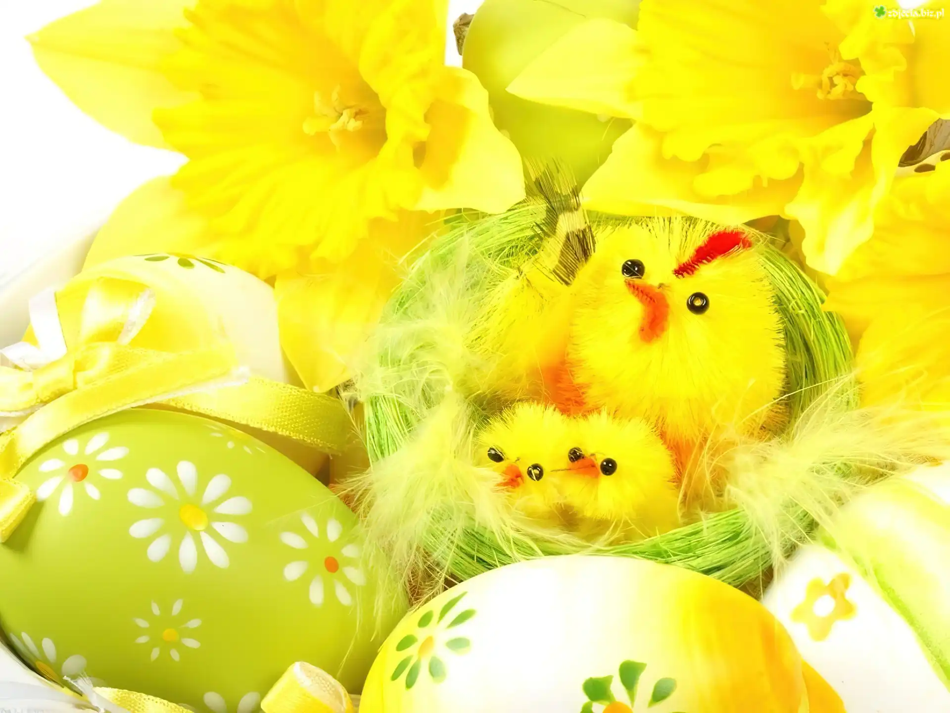 Zdjęcie Wielkanoc, Zielone, Gniazdko, Kurczaczki, Pisanki