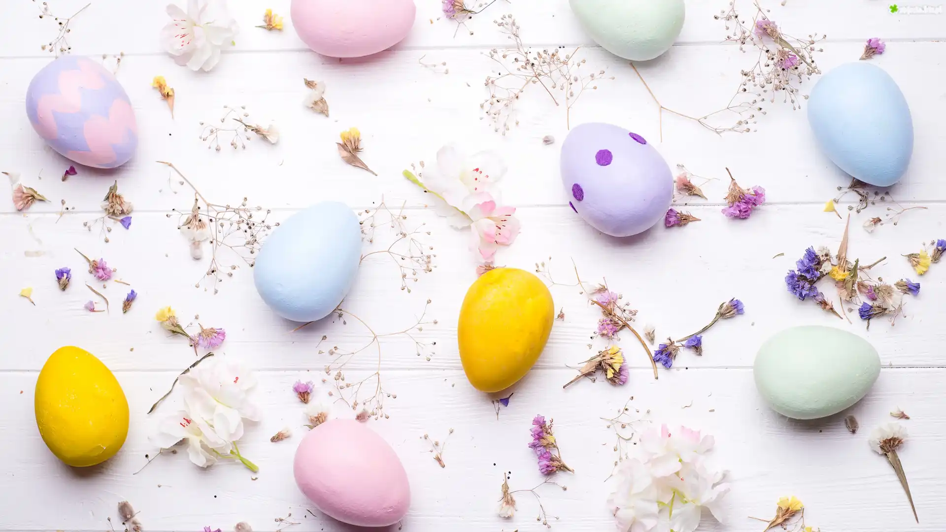 Zdjęcie Wielkanoc, Pisanki, Kwiaty, Deski