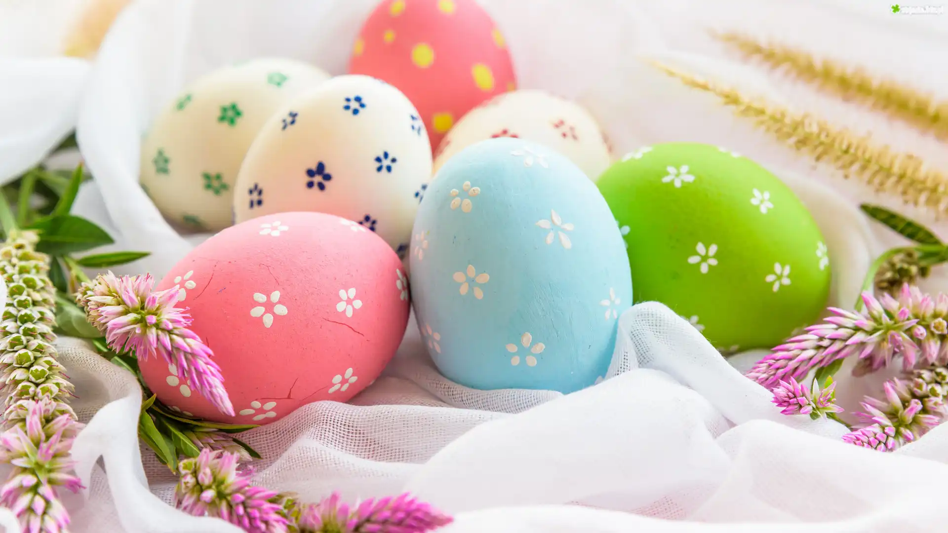 Zdjęcie Wielkanoc, Kolorowe, Pisanki, Kwiaty, Tkanina