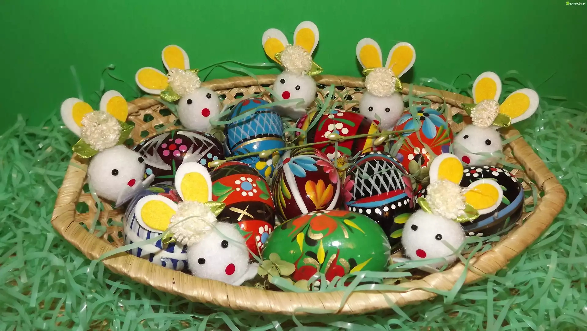 Zdjęcie Wielkanoc, Koszyk, Pisanki, Zajączki