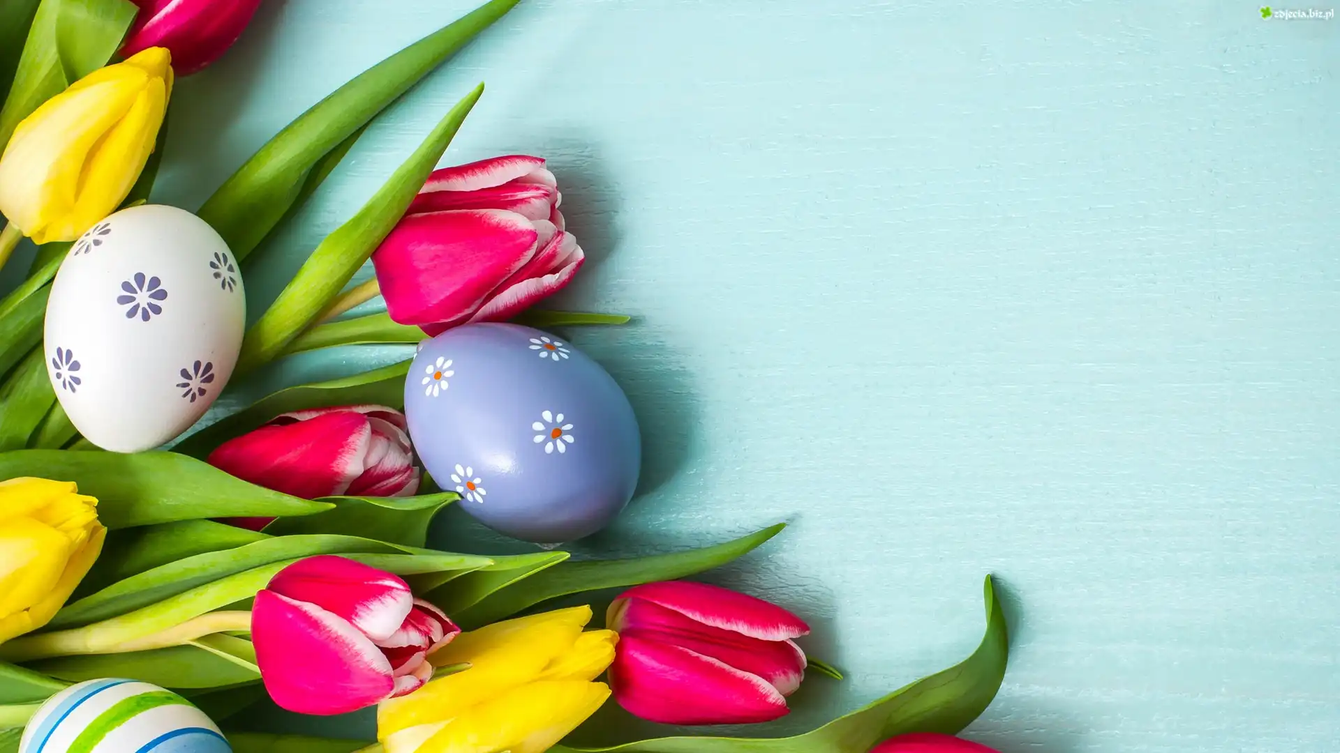Zdjęcie Wielkanoc, Żółte, Różowe, Tulipany, Pisanki, Deski