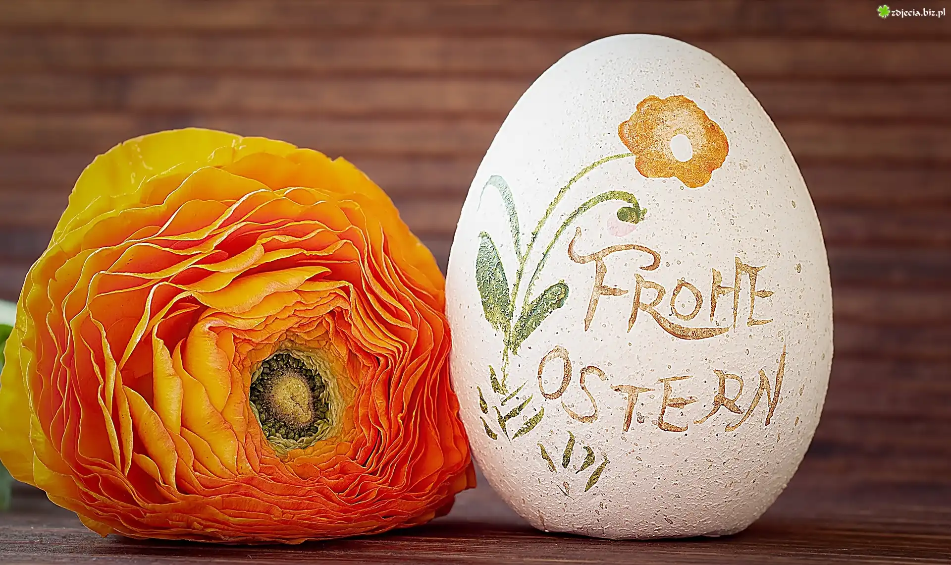 Zdjęcie Wielkanoc, Malowane, Jajko, Pomarańczowy, Jaskier